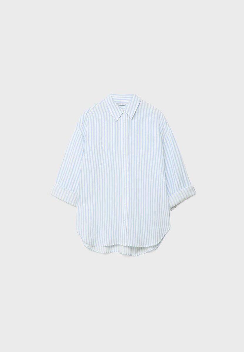 Løs skjorte i stoff med lin-effekt. Har reverskrage og lange ermer med knappede mansjetter. Knapper foran. Tilgjengelig i ulike farger.