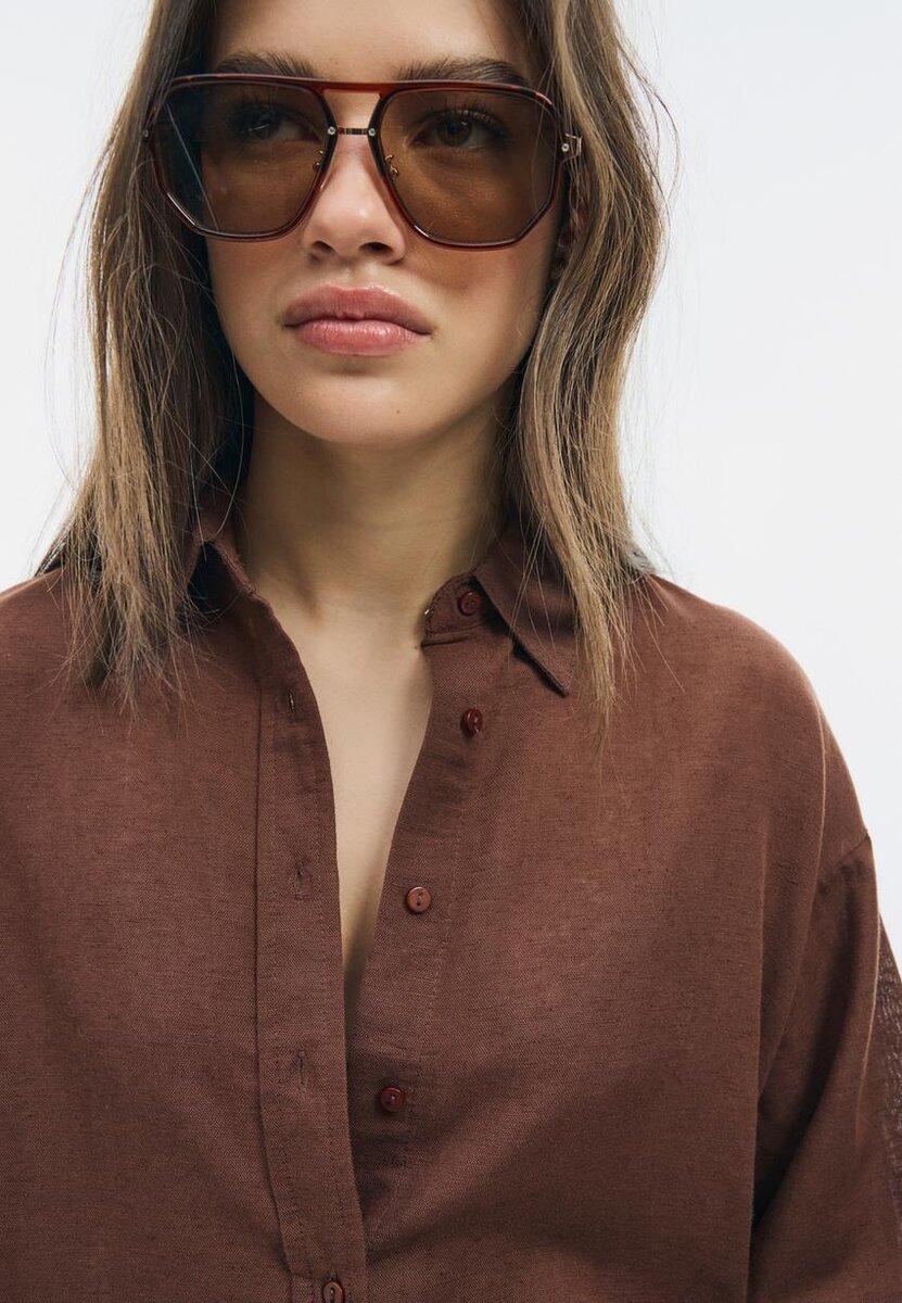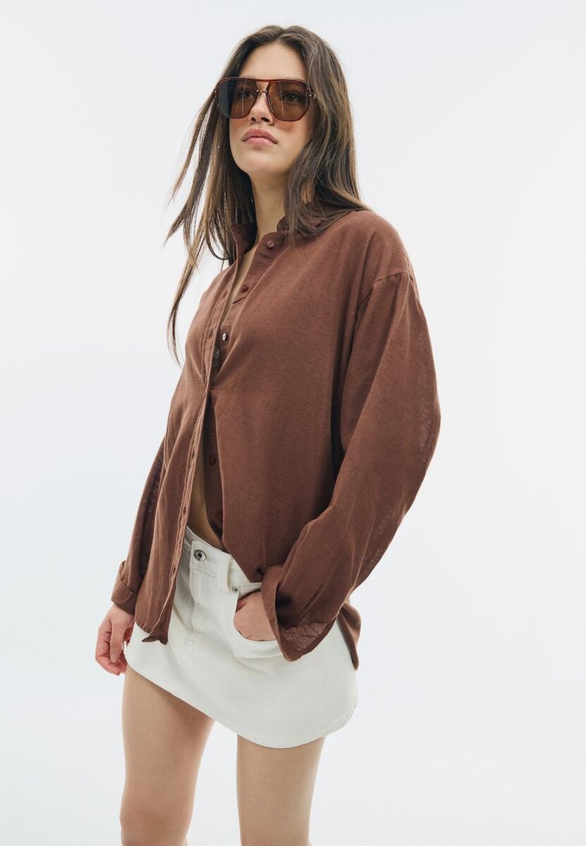 Løs skjorte i lin-look hos Stradivarius for kun 35,9 $ Tilgjengelig i begrenset tid. Skjorter og bluser for kvinner er alltid på moten, kom inn og se selv nå!