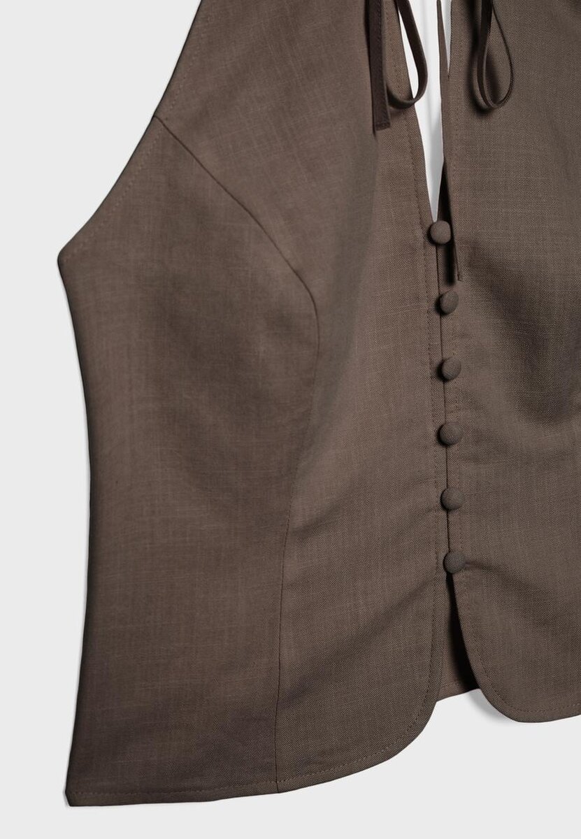Top i qipao-stil med halterneck. Lukking foran med bånd og knapper. Elastisk detalj på baksiden. Tilgjengelig i ulike farger.