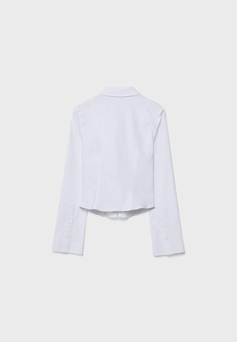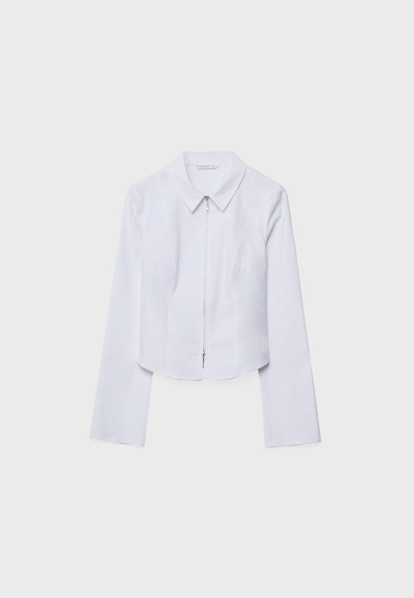 Tettsittende bengalin-skjorte. Med reverskrage og lange ermer. Lukking med dobbel glidelås foran.