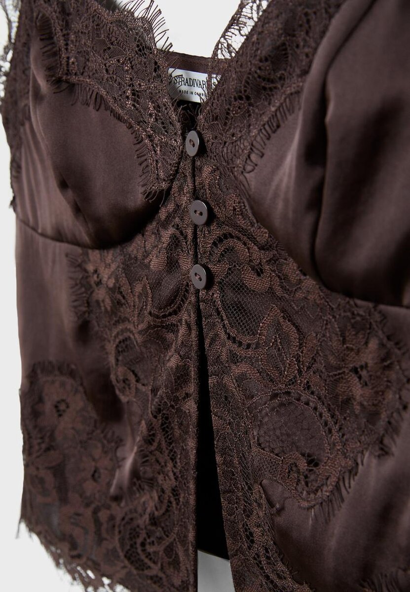 Top med satengblonder og stropper hos Stradivarius for kun 35,9 $ Tilgjengelig i en begrenset periode. Mocacos Nuevo for kvinner Alltid på moten, kom inn og oppdag det nå!