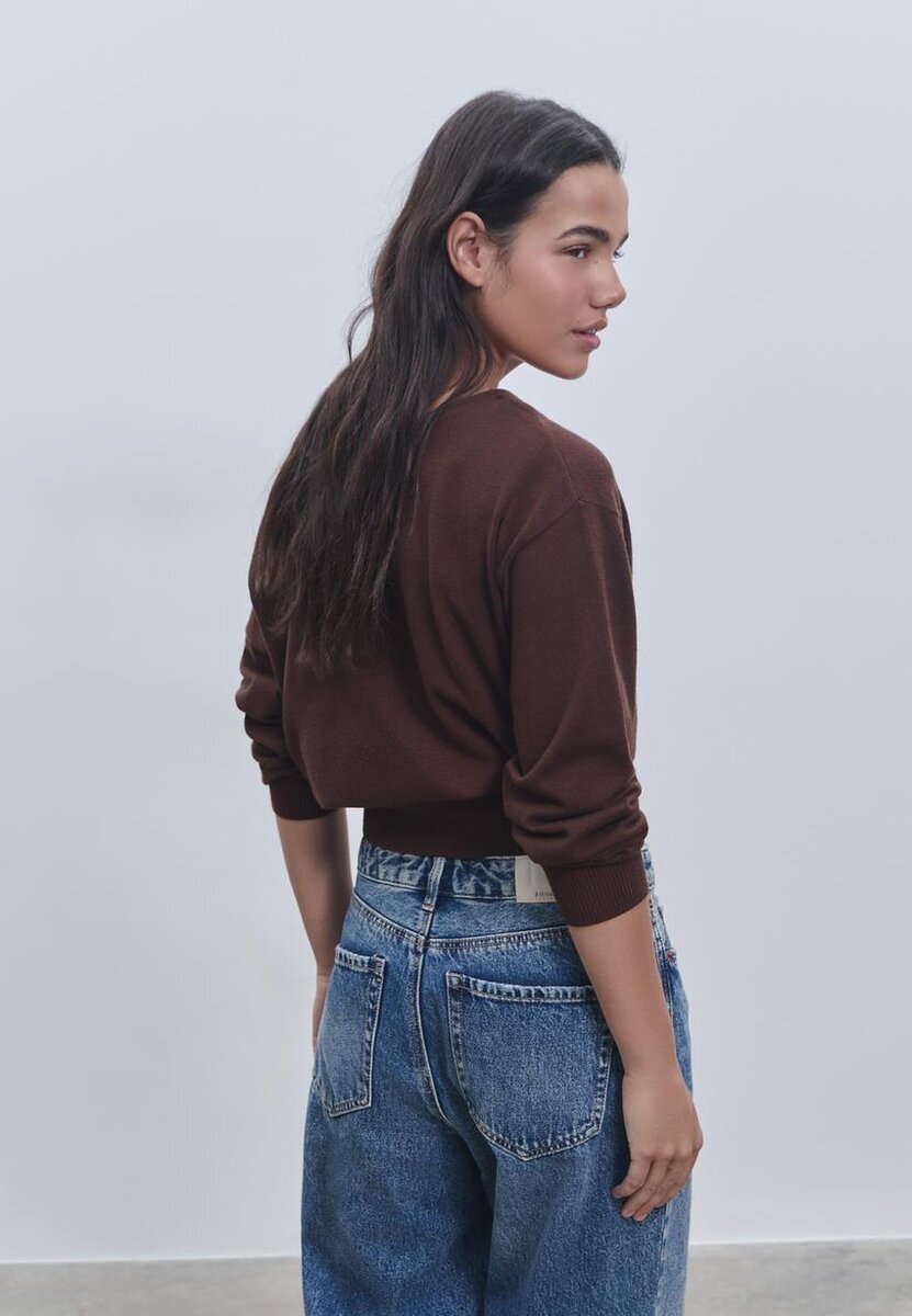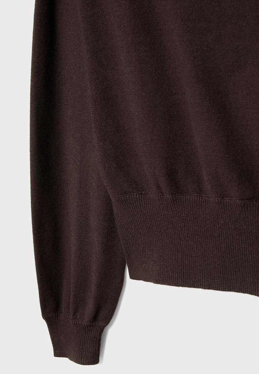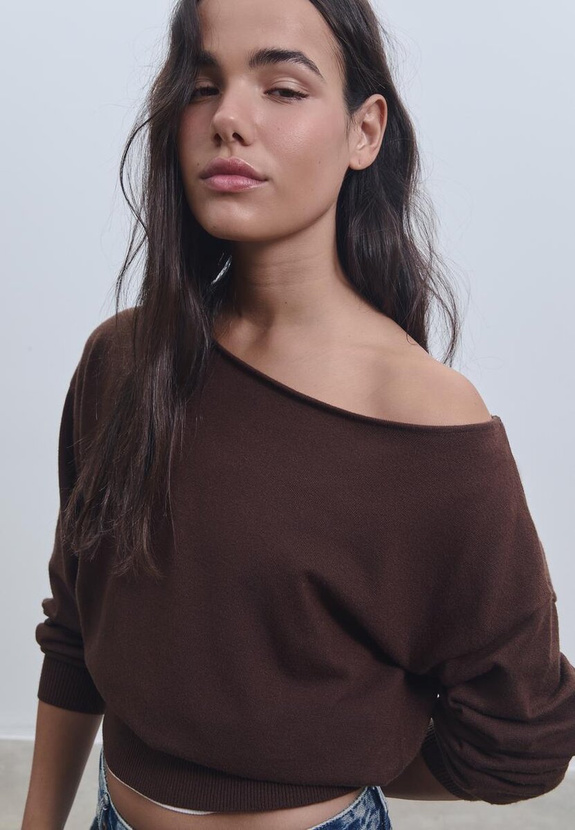 Genser laget av elastisk strikk. Har båthals og lange ermer med mansjetter. Ribbet kant nederst. Finnes i flere farger.