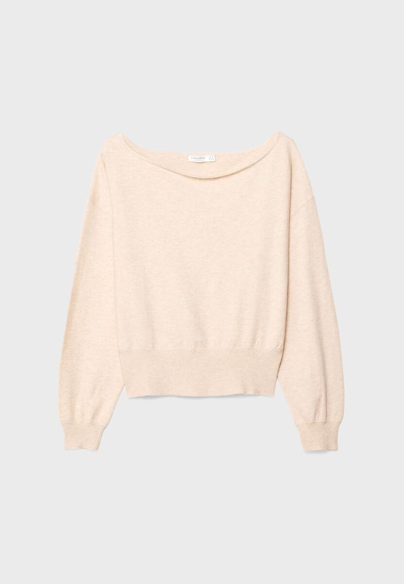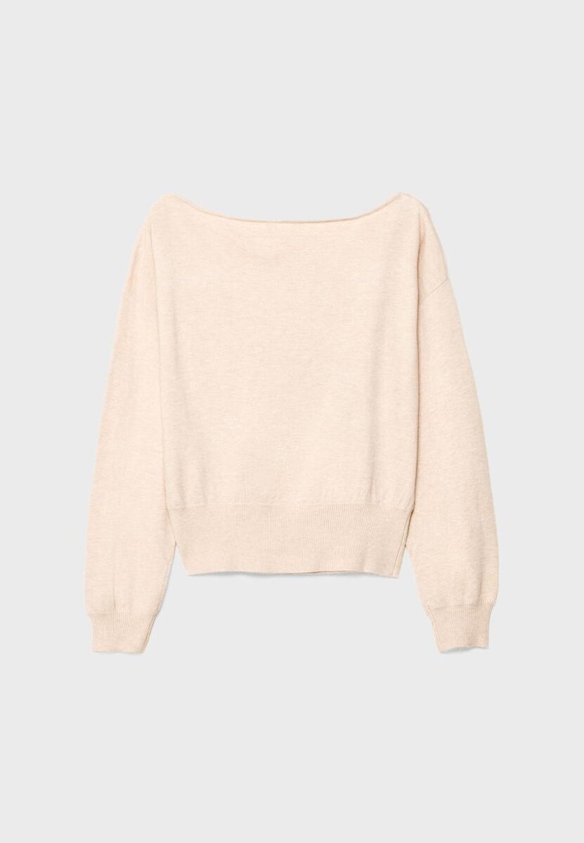 Genser laget av elastisk strikk. Har båthals og lange ermer med mansjetter. Ribbet kant nederst. Finnes i flere farger.