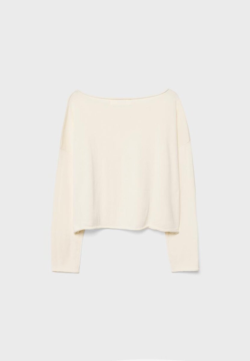 Kort genser med båthals og lange ermer. Sømløse kanter. Tilgjengelig i flere farger.