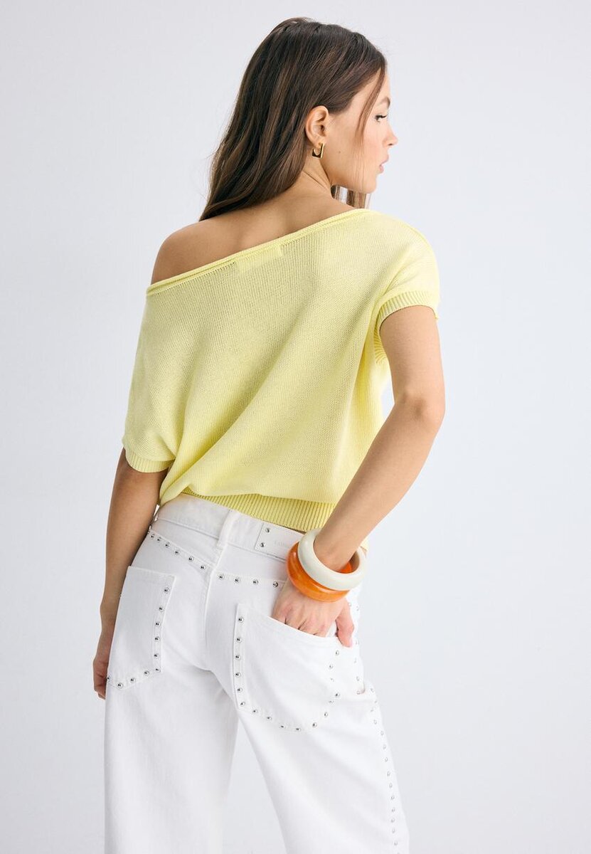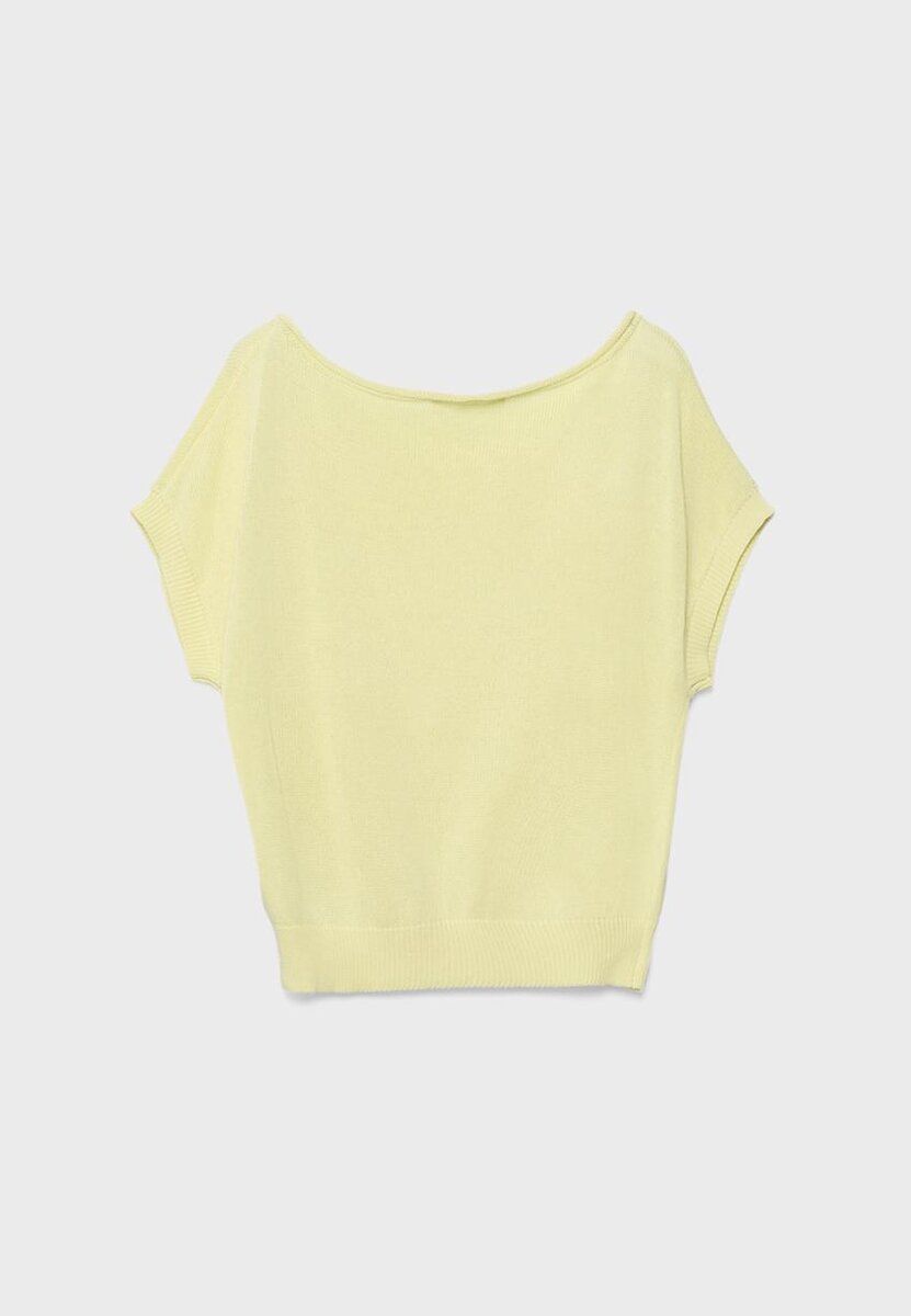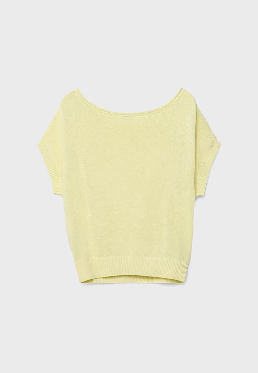 Topp laget av rustikk strikket stoff med 13 % lin. Med båthals og korte ermer. Ribbestrikkede kanter. Tilgjengelig i en rekke farger.