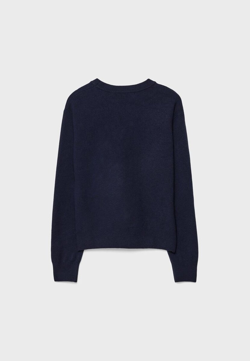 Strikket genser med myk følelse, rund hals og lange ermer. Ribbestrikkede kanter. Tilgjengelig i ulike farger.