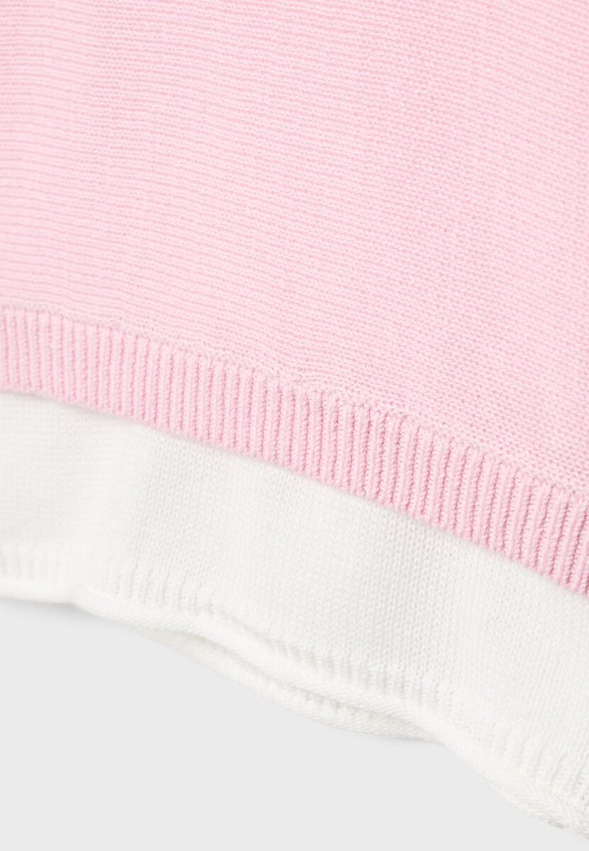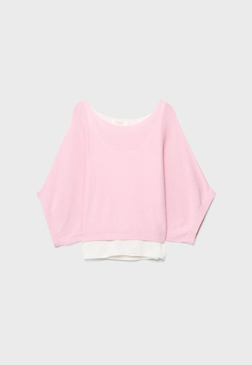 Strikkegenser med båthals og vide ermer. Med kontrastfarget overlegg i dobbeltlags stoff. Tilgjengelig i ulike farger.