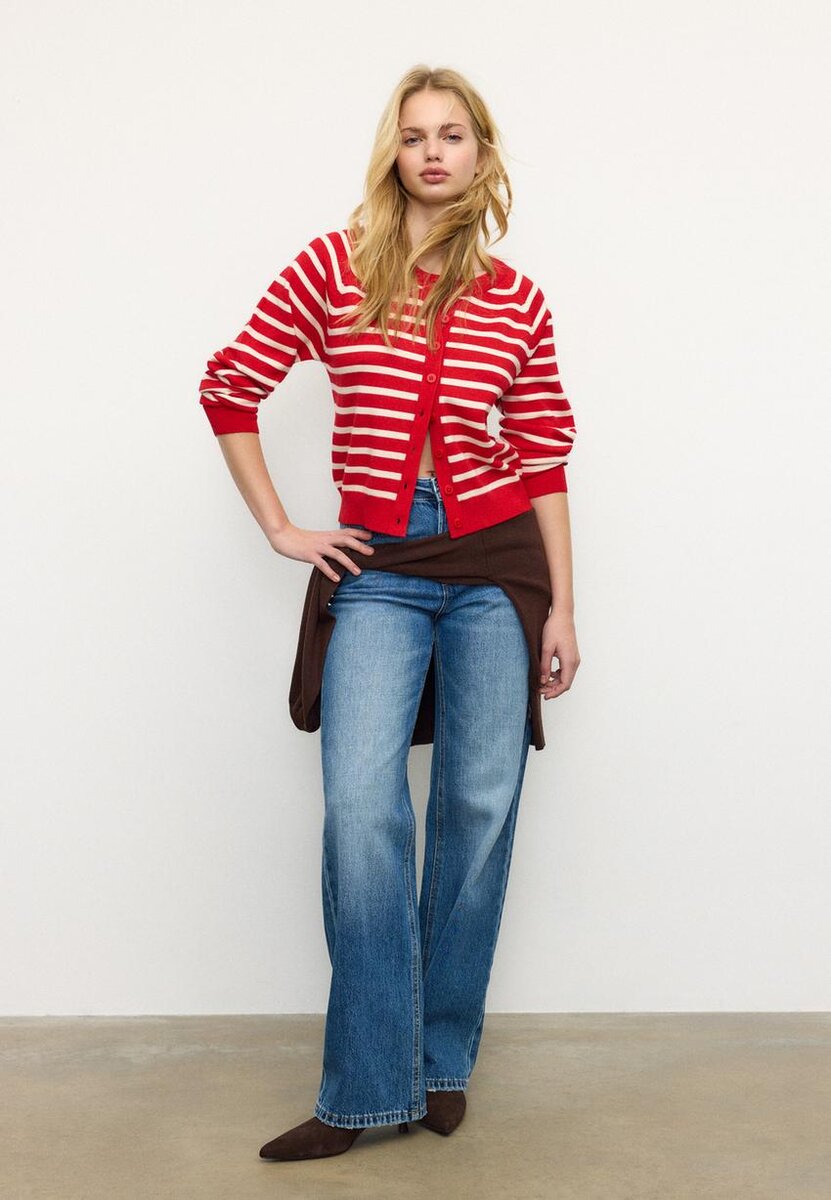 Strikket cardigan i stretch med rund hals og lange raglanermer. Ribbestrikkede kanter. Tilgjengelig i ulike farger.