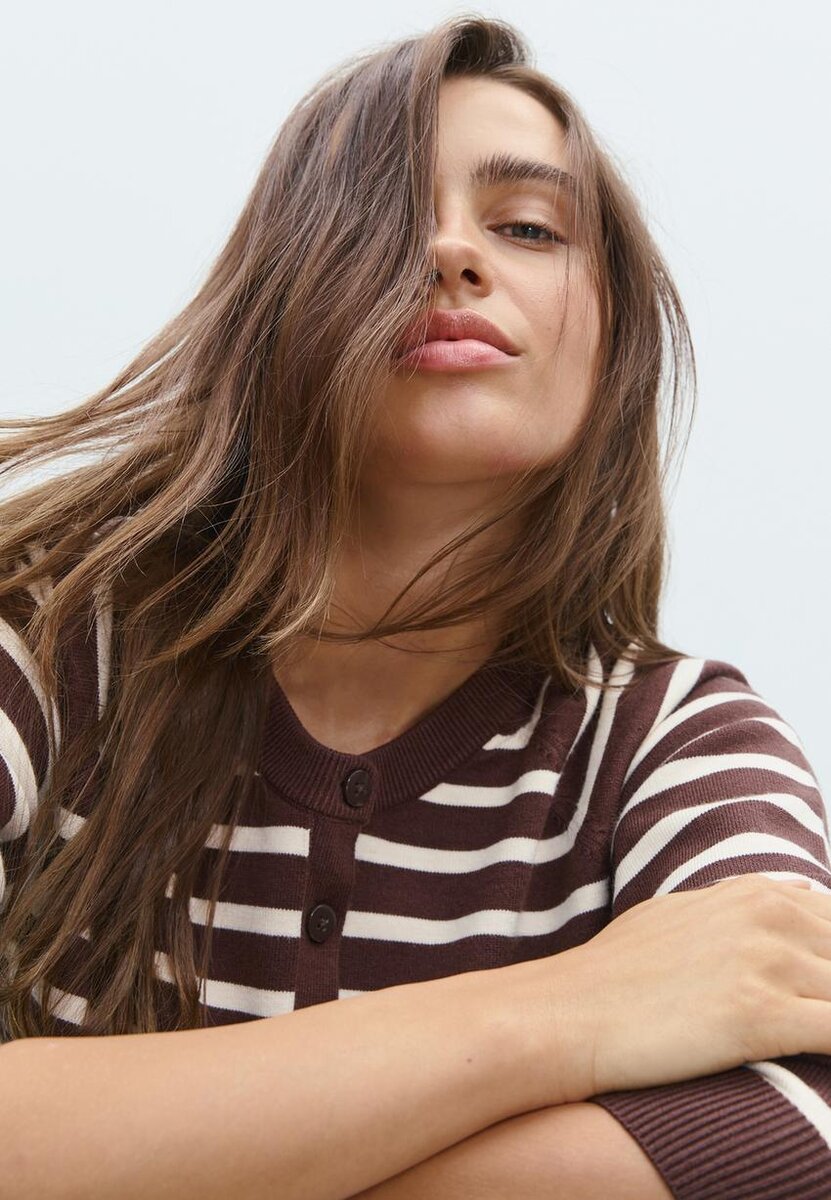 Strikkegenser i stretch med rund hals og lange raglanermer. Ribbestrikkede kanter. Finnes i flere farger.