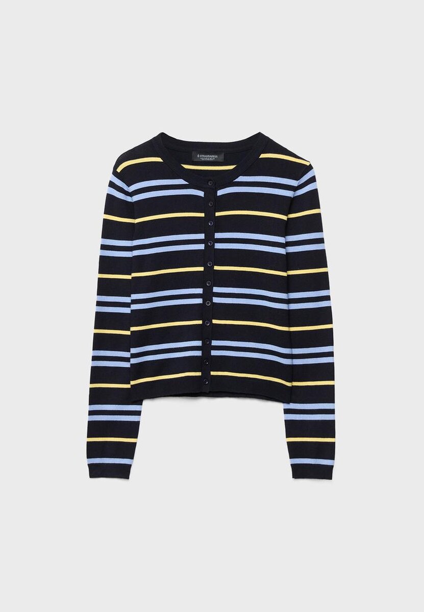 Strikket cardigan med rund hals og normal passform. Lange ermer. Ribbestrikk ved hals og mansjetter. Knapper foran. Finnes i flere farger.