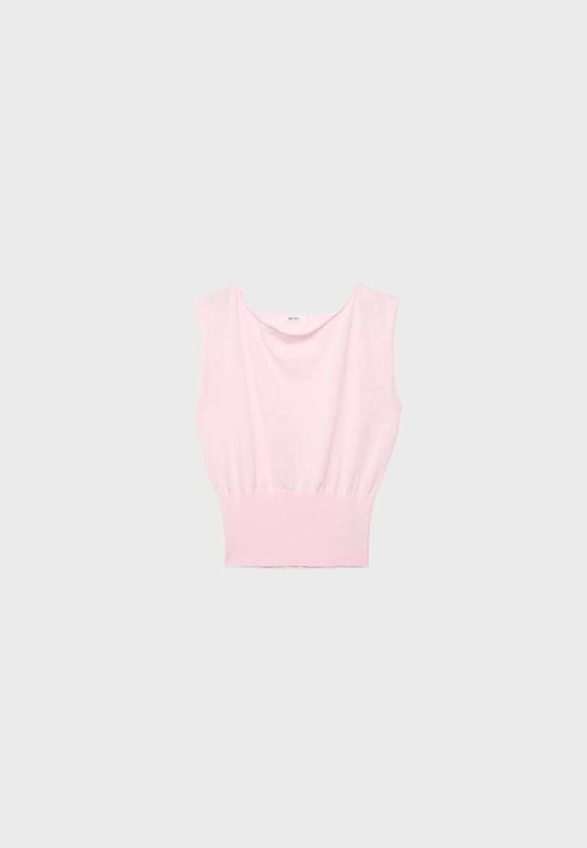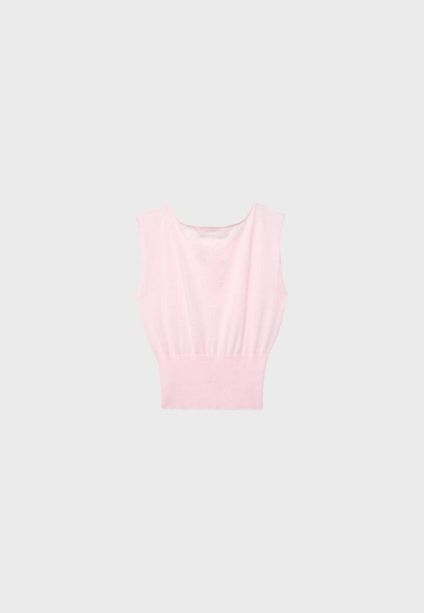 Strikket topp med båthals og uten ermer. Bånddetalj med ribbet finish. Tilgjengelig i flere farger.