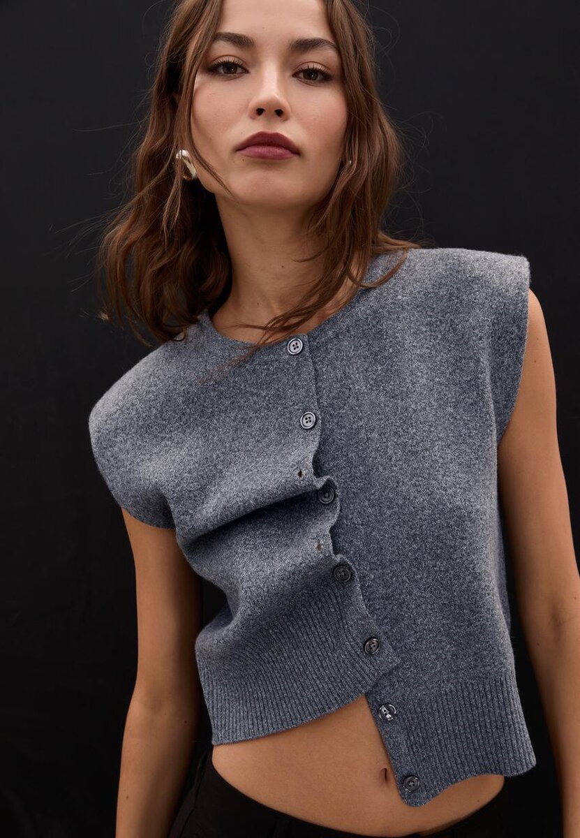 Strikket vest med polstrede skuldre