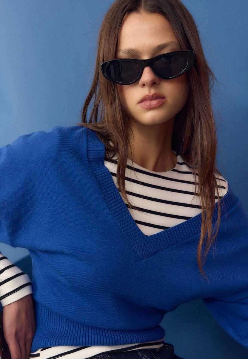 Genser med V-hals og flaggermusermer
