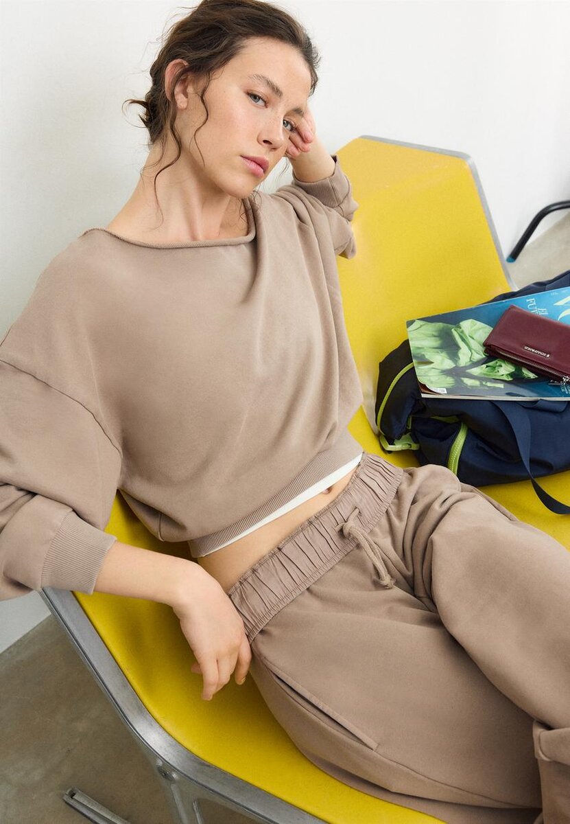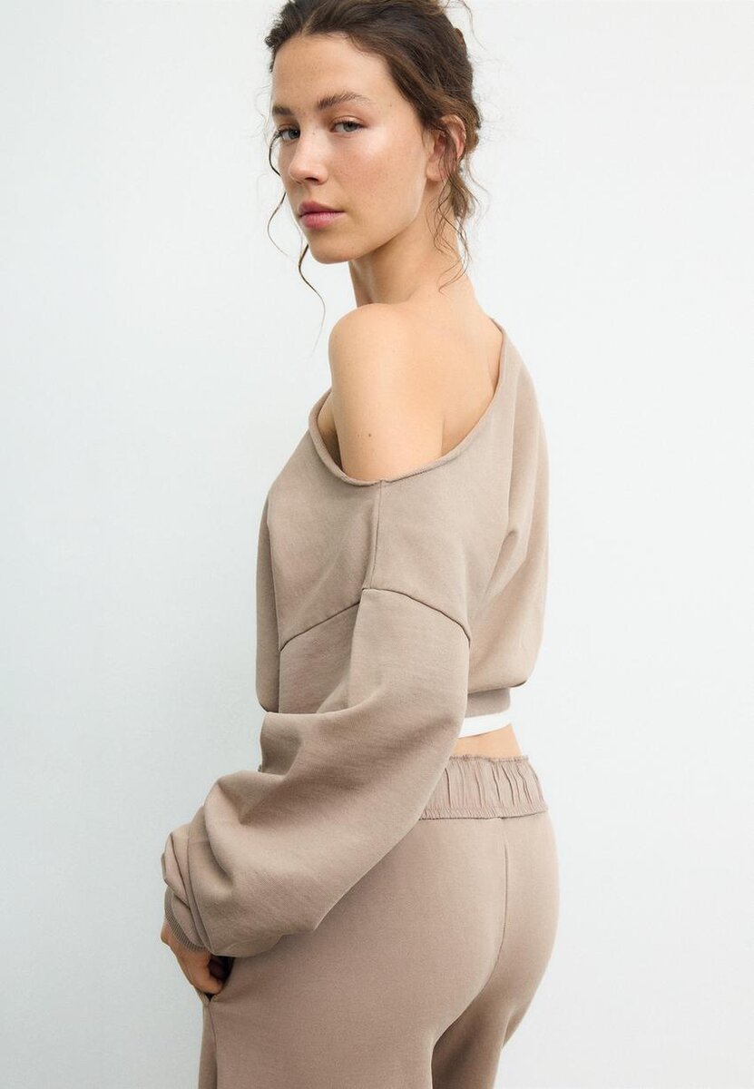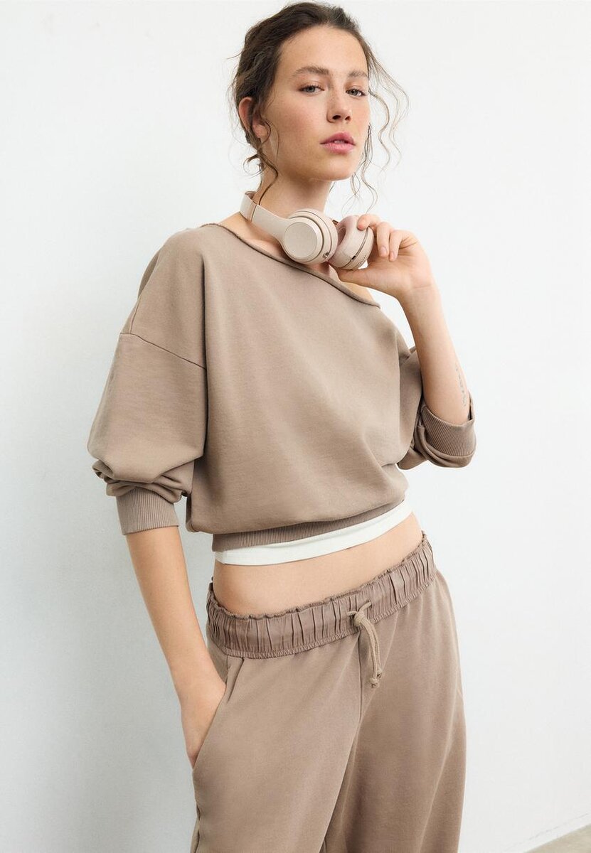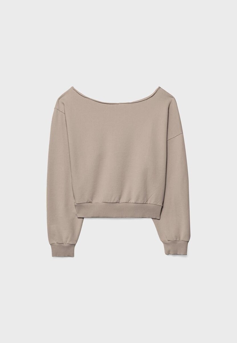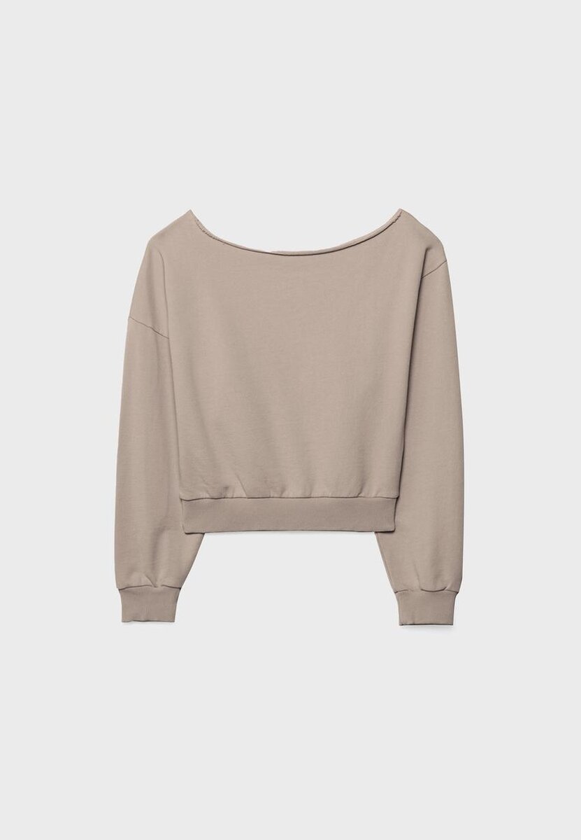 Kort sweatshirt med båthals og lange ermer. Ribbede kanter. Tilgjengelig i ulike farger.