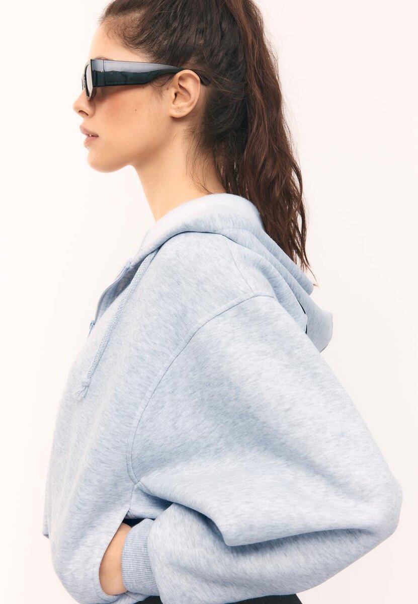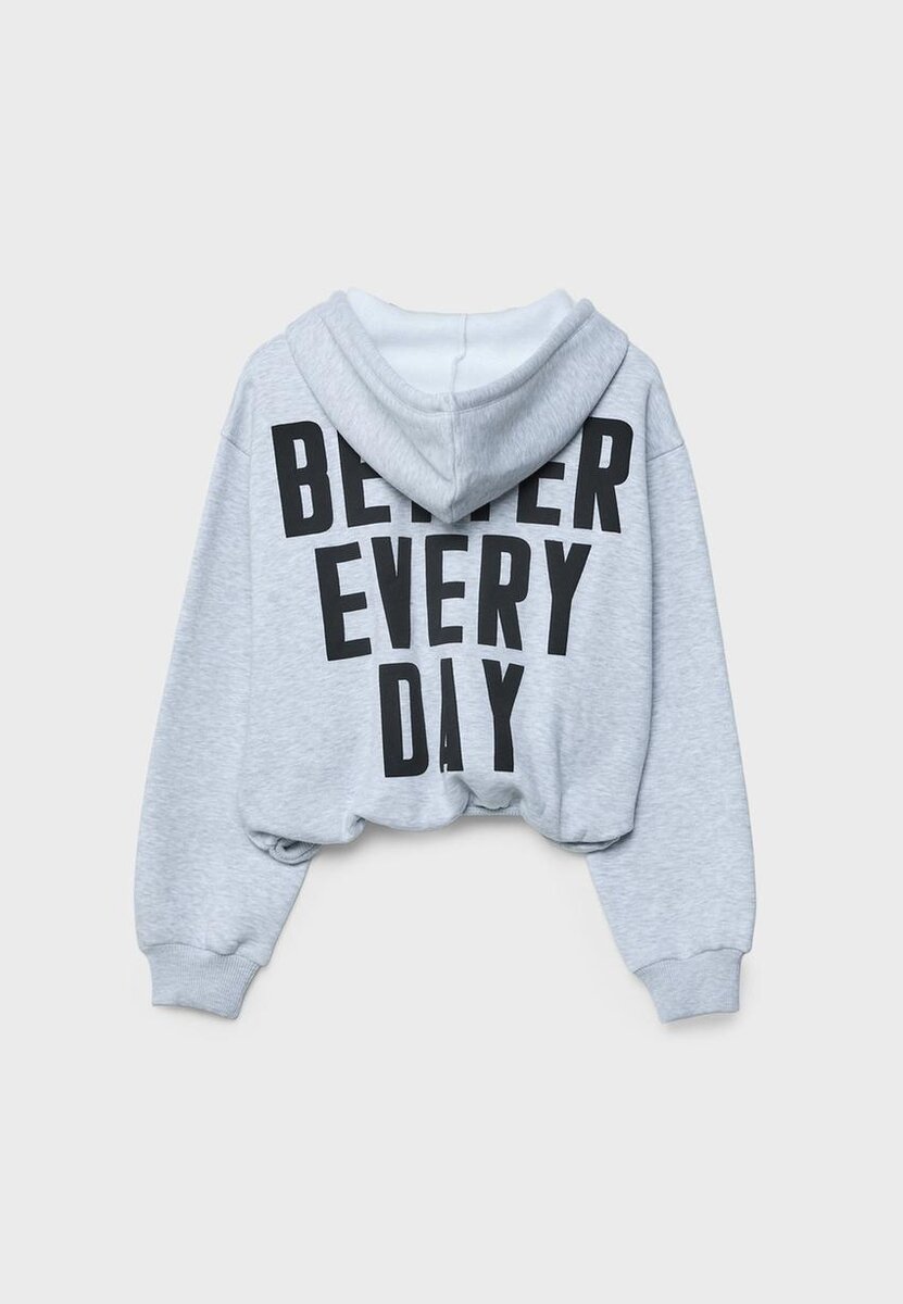 Bomber-sweatshirt med justerbar hette med snøring. Lange ermer med ribbede mansjetter. Glidelås foran. Ribbet kant nederst. Mønstret detalj på baksiden. Tilgjengelig i ulike farger.