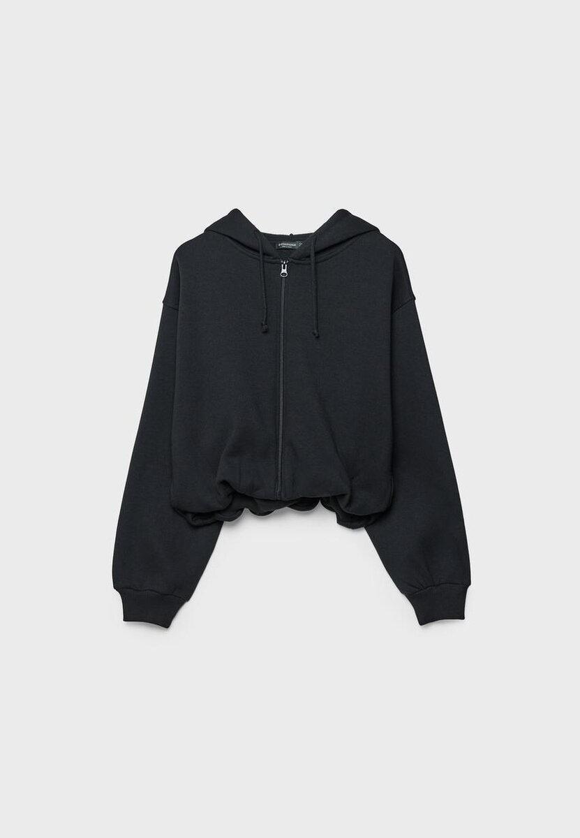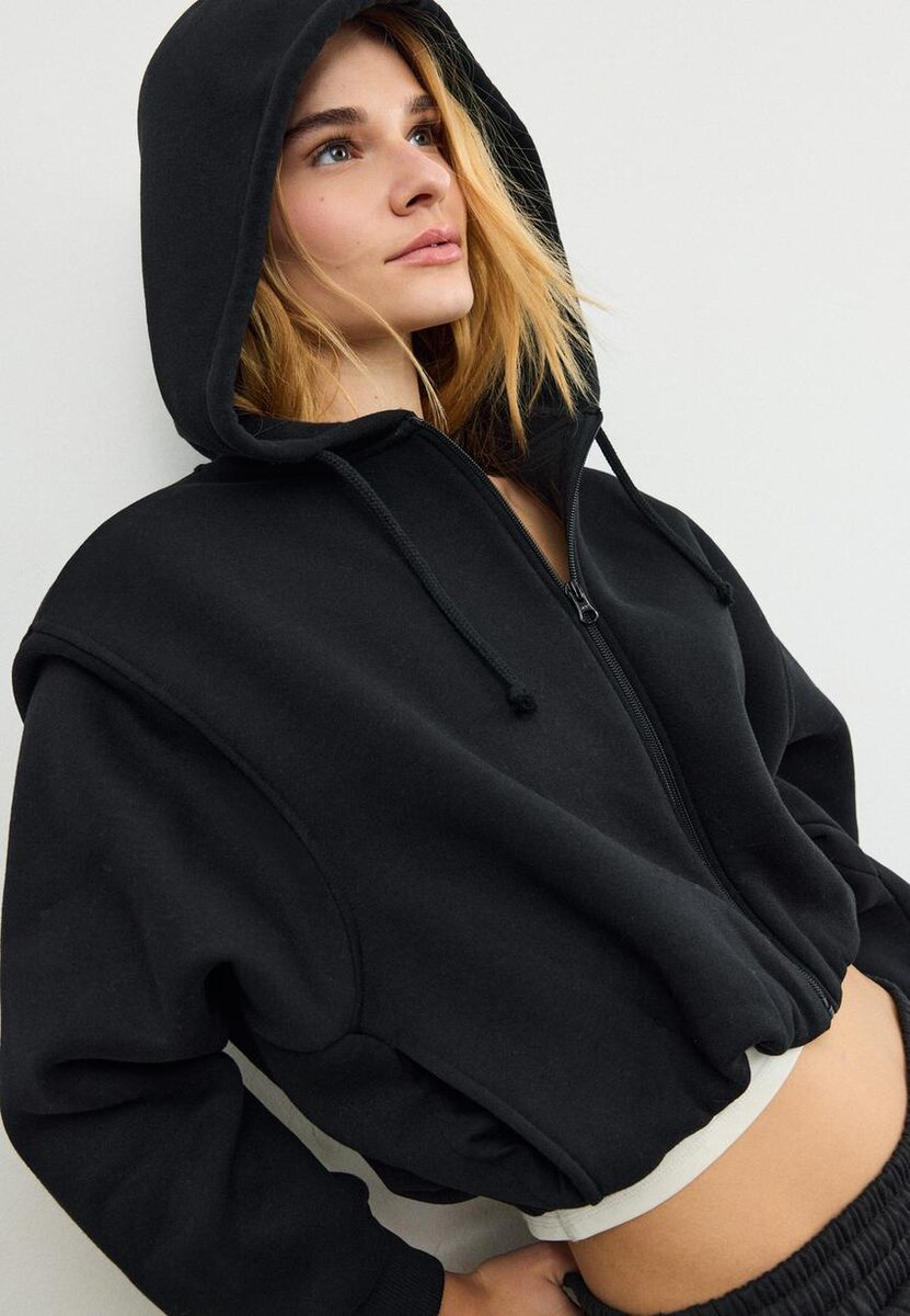 Bomber-sweatshirt med hette med justerbar snor. Lange ermer med ribbede mansjetter. Glidelås foran. Ribbet nederkant. Mønstret detalj på baksiden. Tilgjengelig i ulike farger.