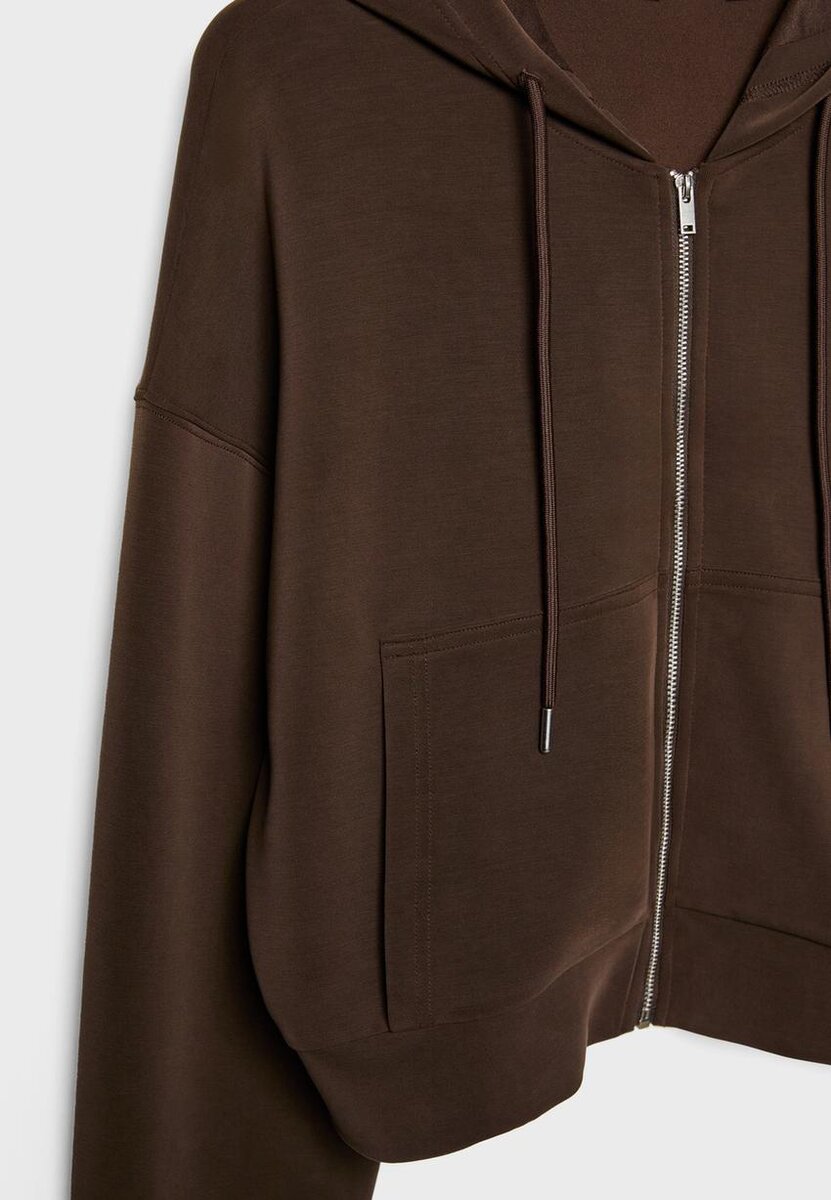 Soft-Feel-Sweatshirt. Justerbar hette med ton-i-ton-snøringer og lange ermer. Lommer foran.