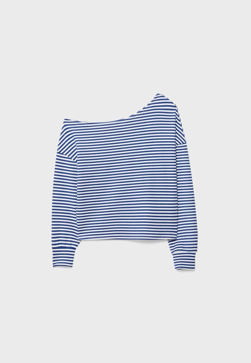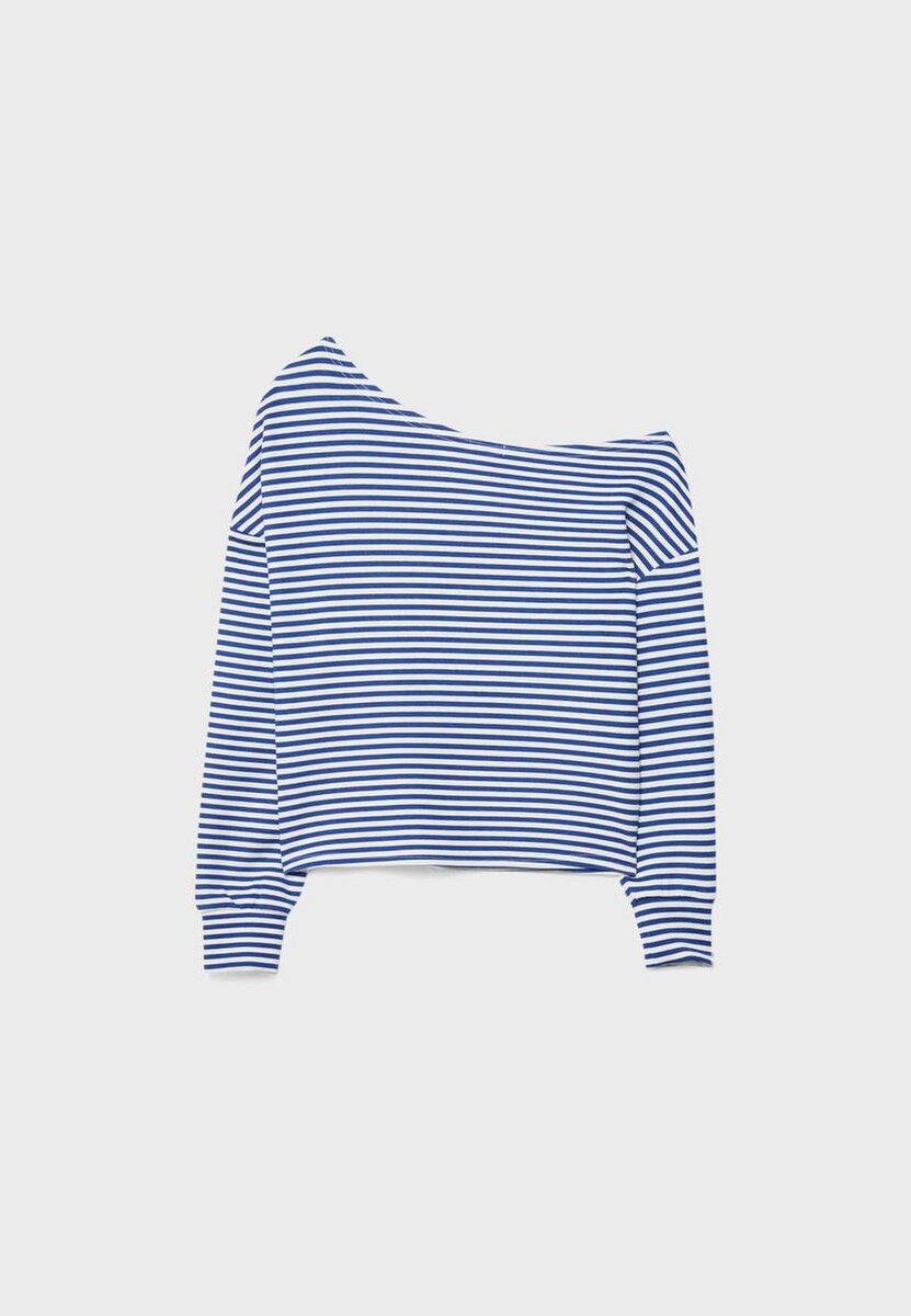 Myk og flytende Sweatshirt. Asymmetrisk halsutringning med design som viser skuldrene og lange ermer. Tilgjengelig i ulike farger.
