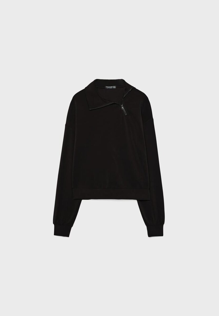 Soft-Feel-Sweatshirt. Høy hals med diagonalt glidelåsdetalj og lange ermer med mansjetter. Tilgjengelig i ulike farger.