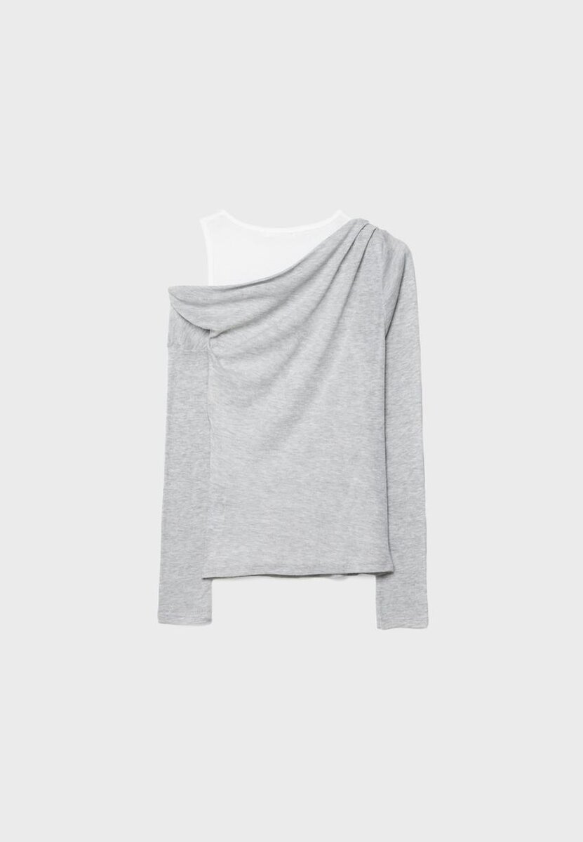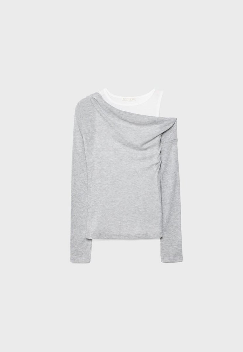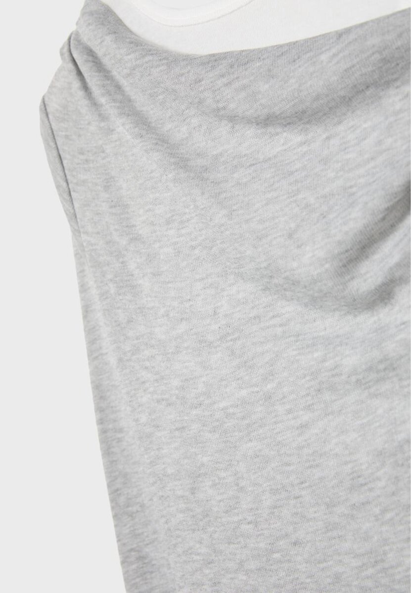 Kombinert T-skjorte med drapert asymmetrisk hals og lange ermer. Med en kontrastfarget T-skjorte med rund hals og racerback-stropper på innsiden. Tilgjengelig i flere farger.