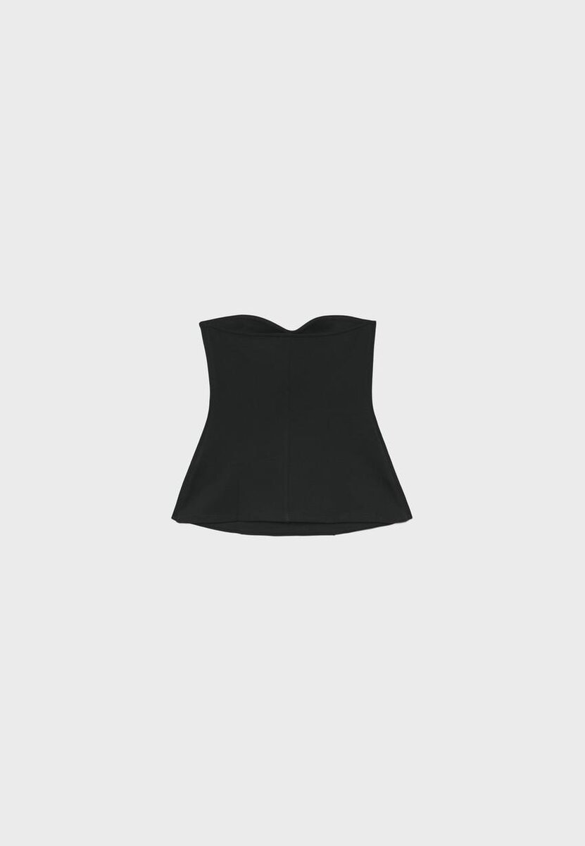 Tettsittende bandeau med hjerteformet utringning og synlige sømmer. Tilgjengelig i ulike farger.