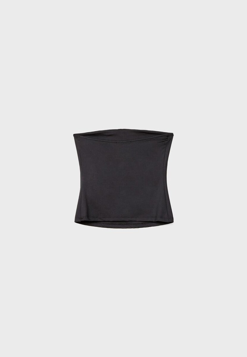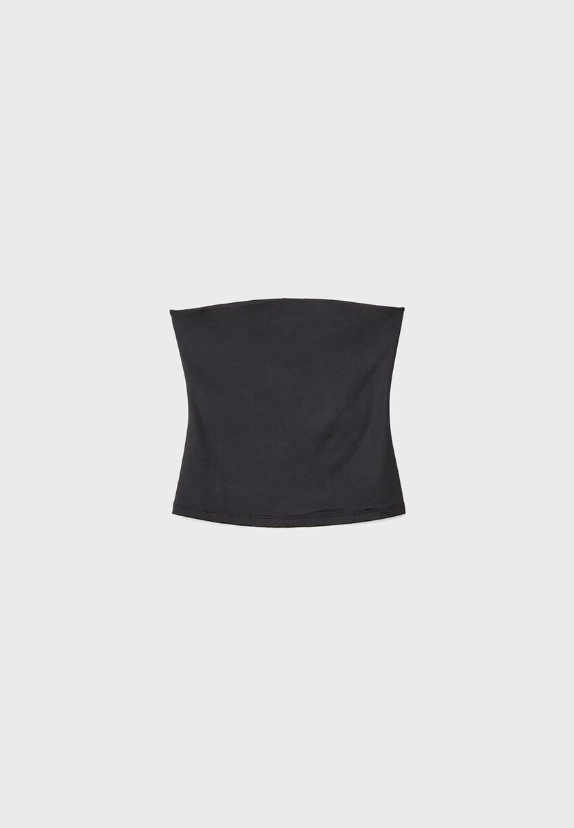 Bandeau-top med rett utringning og bare skuldre. Tilgjengelig i ulike farger.