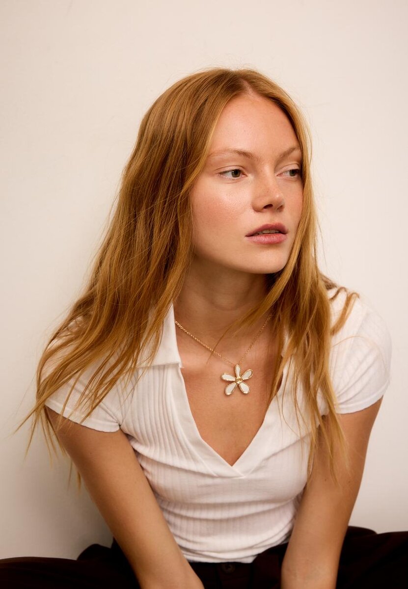 Tettsittende Seamless-T-skjorte med Johnny-krage og V-hals. Korte ermer. Tilgjengelig i flere farger.