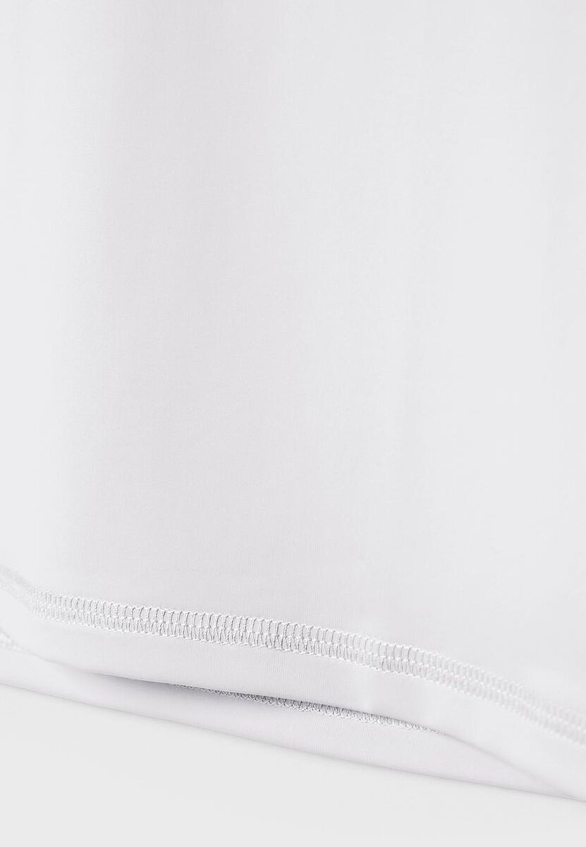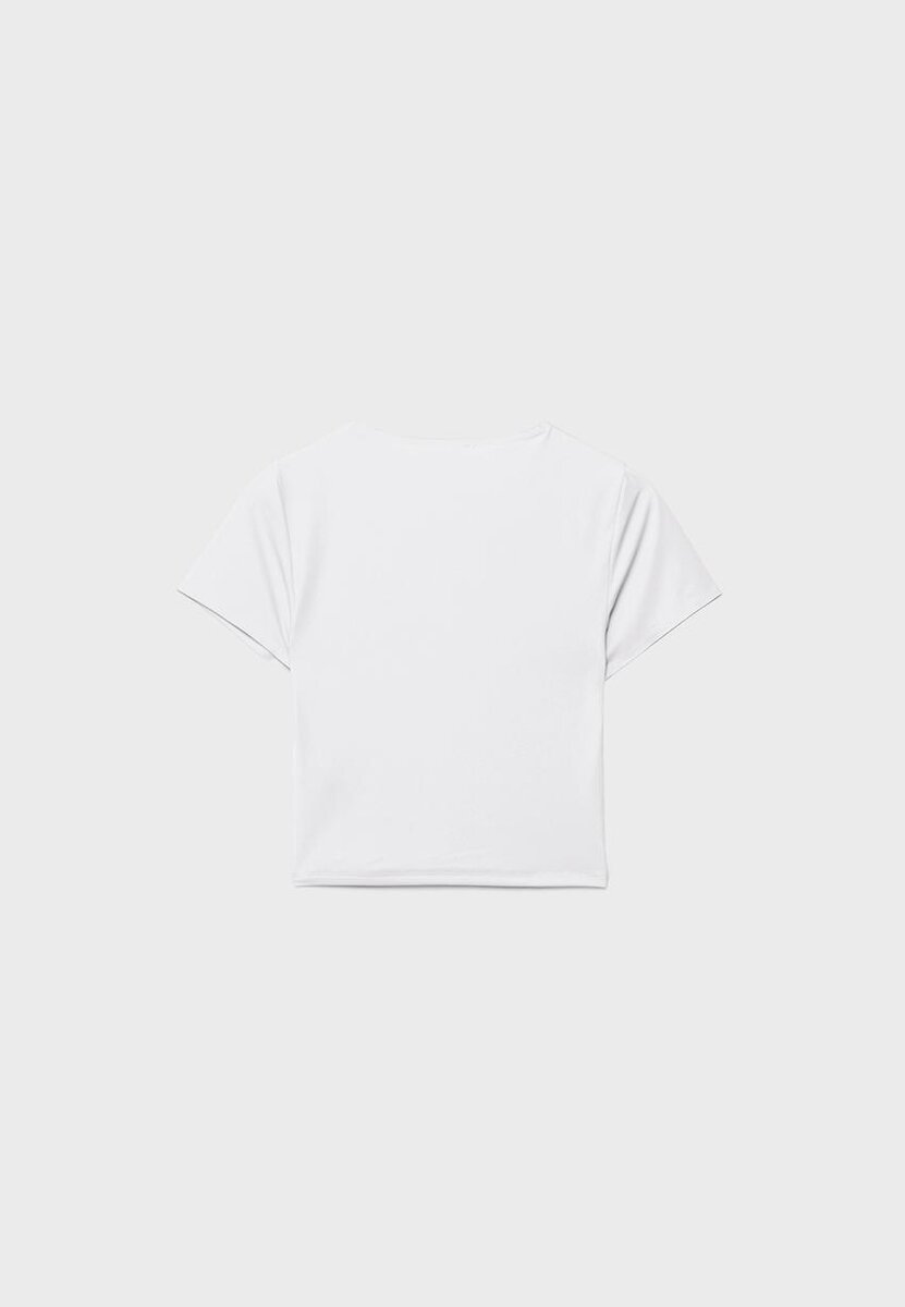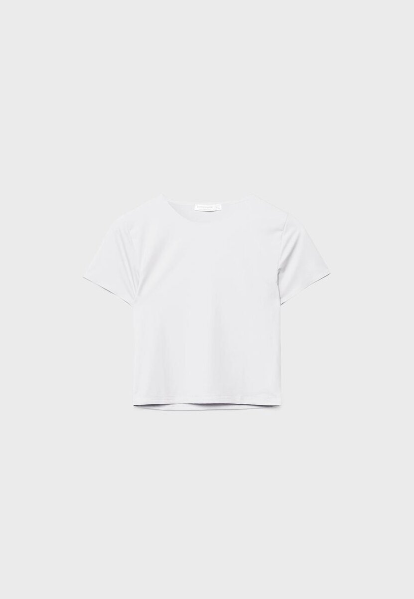 Tettsittende, kort T-skjorte laget av en polyamidblanding. Rund hals og korte ermer.