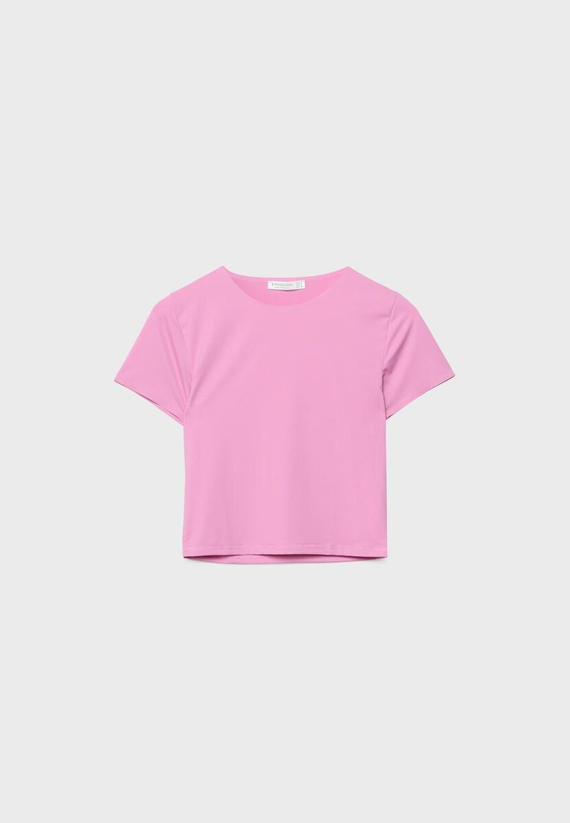 Tettsittende, kort T-skjorte laget av en polyamidblanding. Rund hals og korte ermer.