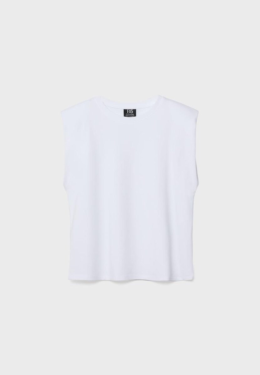 Basisplagg i normal lengde med vid passform. Rund hals og ermeløs. Har polstrede skuldre. Tilgjengelig i en rekke farger.