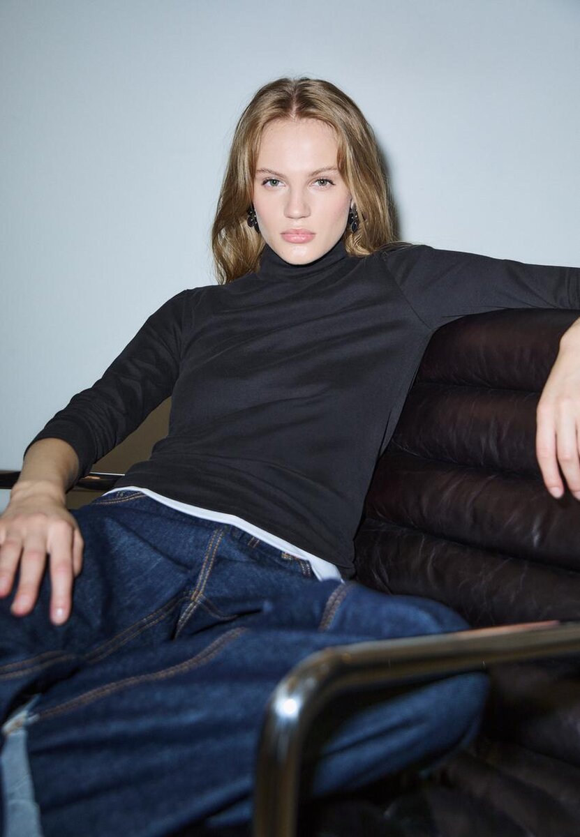 Basisplagg laget av et Soft-Touch-stoff. Har høy hals og lange ermer. Tilgjengelig i ulike farger.