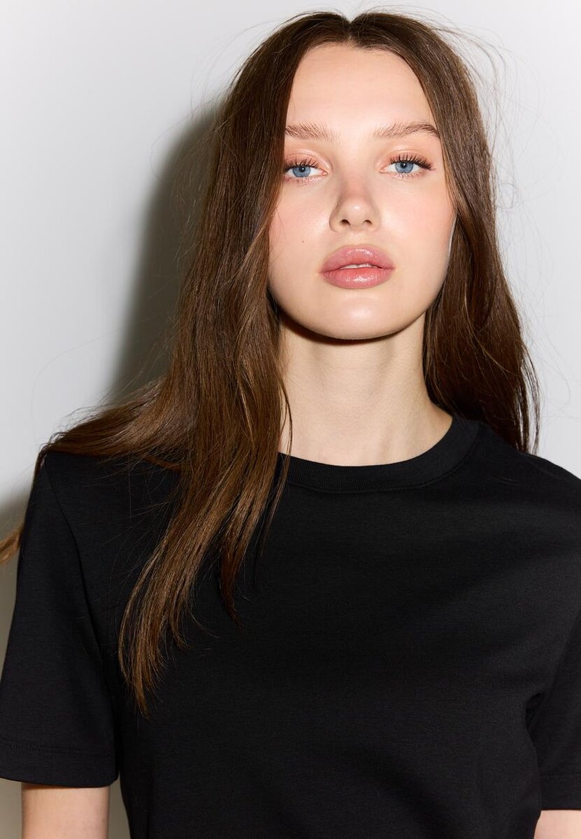 Basisplagg med rett, normal passform laget av bomullsstoff. Med rund hals og korte ermer. Tilgjengelig i ulike farger.