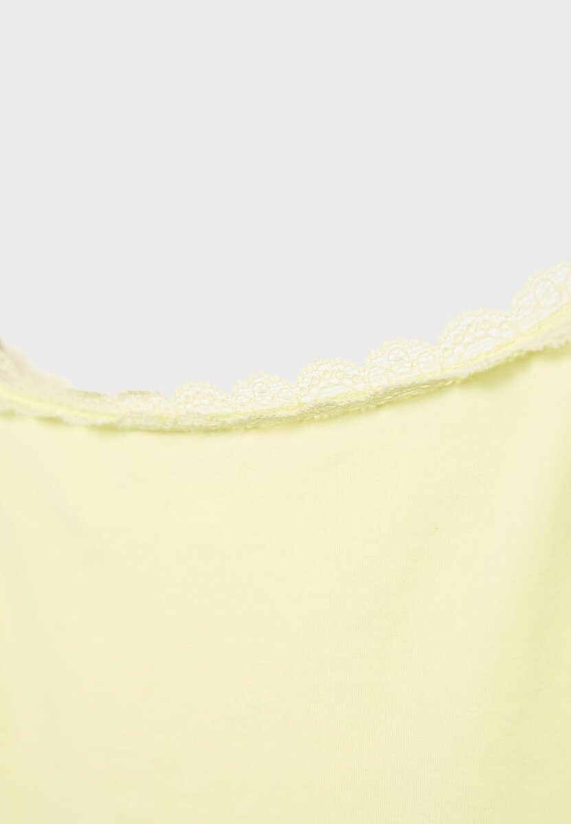 Tettsittende bodysuit laget av en bomullsblanding. Rett utringning med matchende blond blonderkant og tynne stropper. Trykknappfeste nederst.