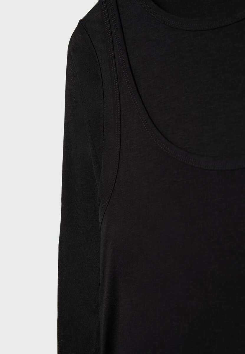 T-skjorte med rund hals og lange ermer. Med et tone-i-tone-overlegg i stoff med «Double Garment»-effekt.