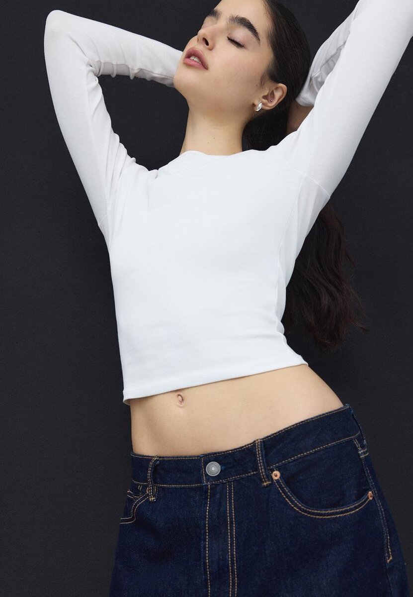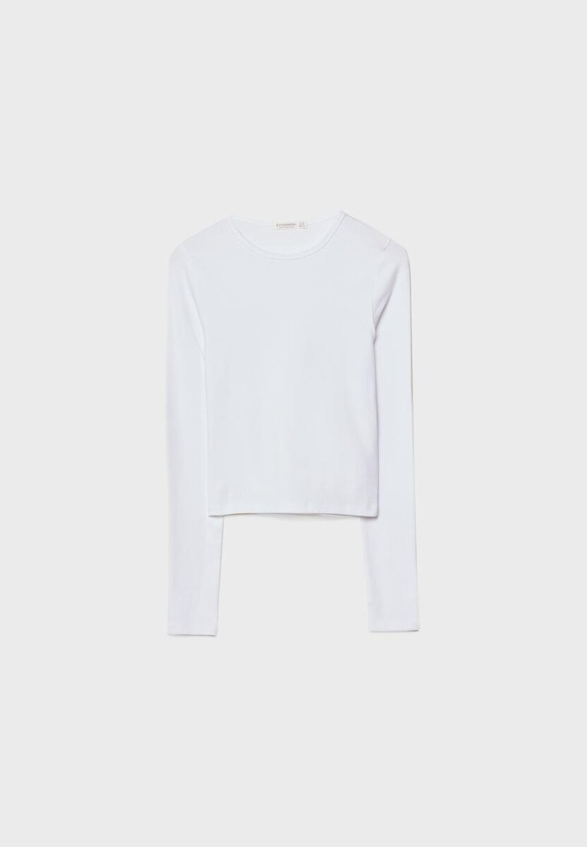 Basic langermet bomulls-T-skjorte hos Stradivarius for kun 10,74 $ Tilgjengelig i en begrenset periode. T-skjorter for kvinner er alltid på moten, kom inn og sjekk ut utvalget nå!