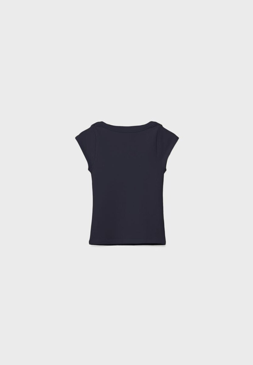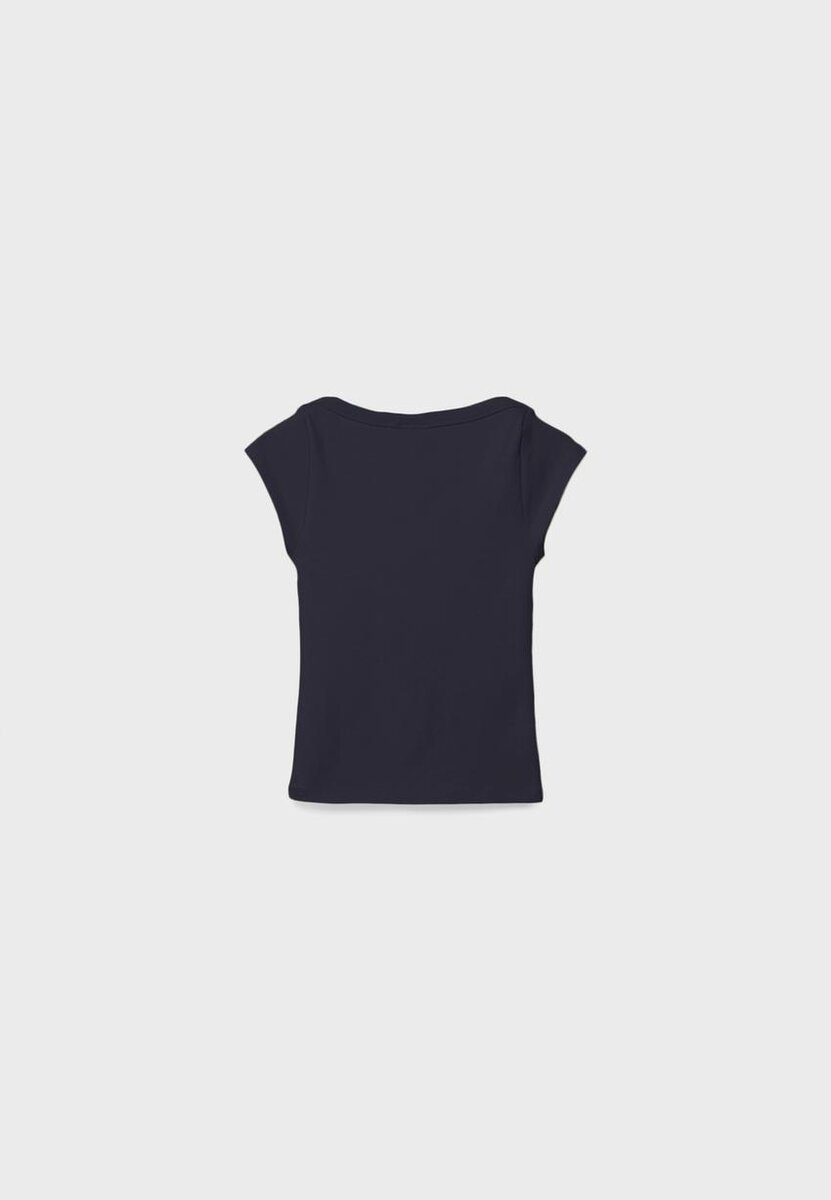 Tettsittende T-skjorte med båthals og korte ermer. Tilgjengelig i ulike farger.