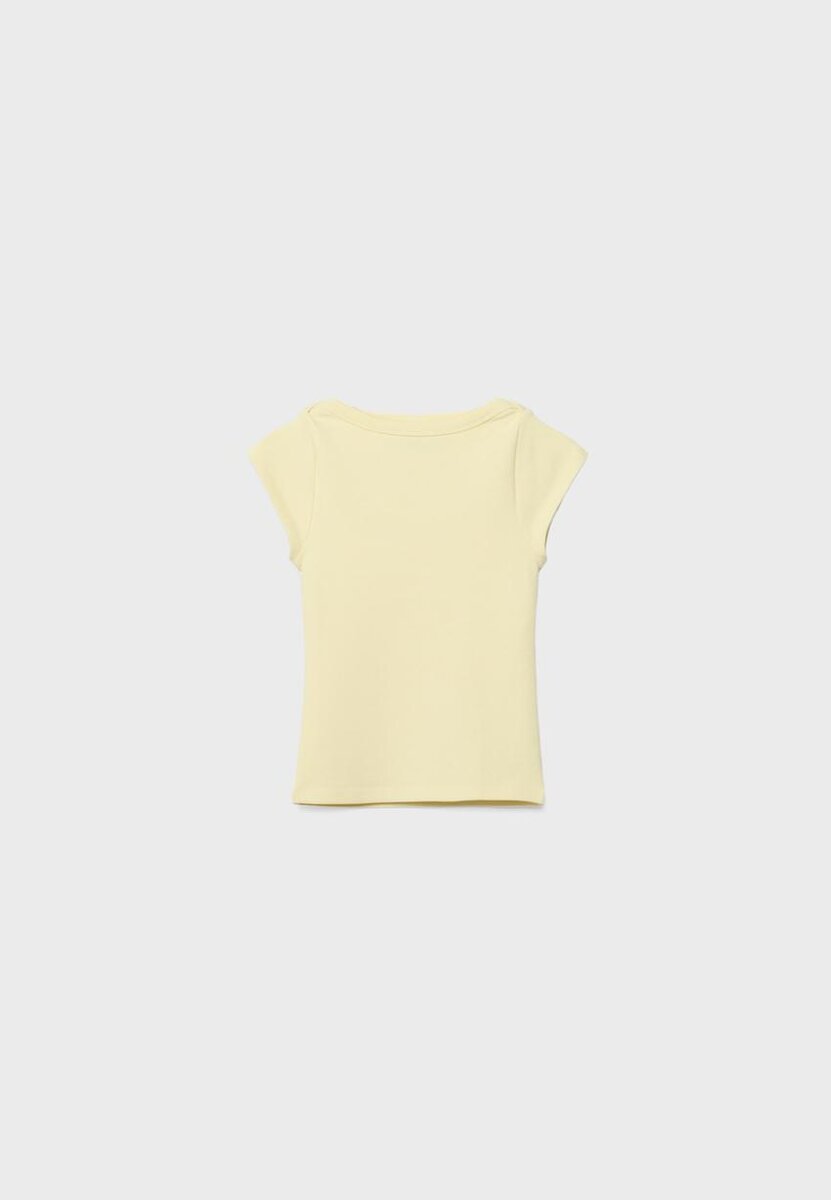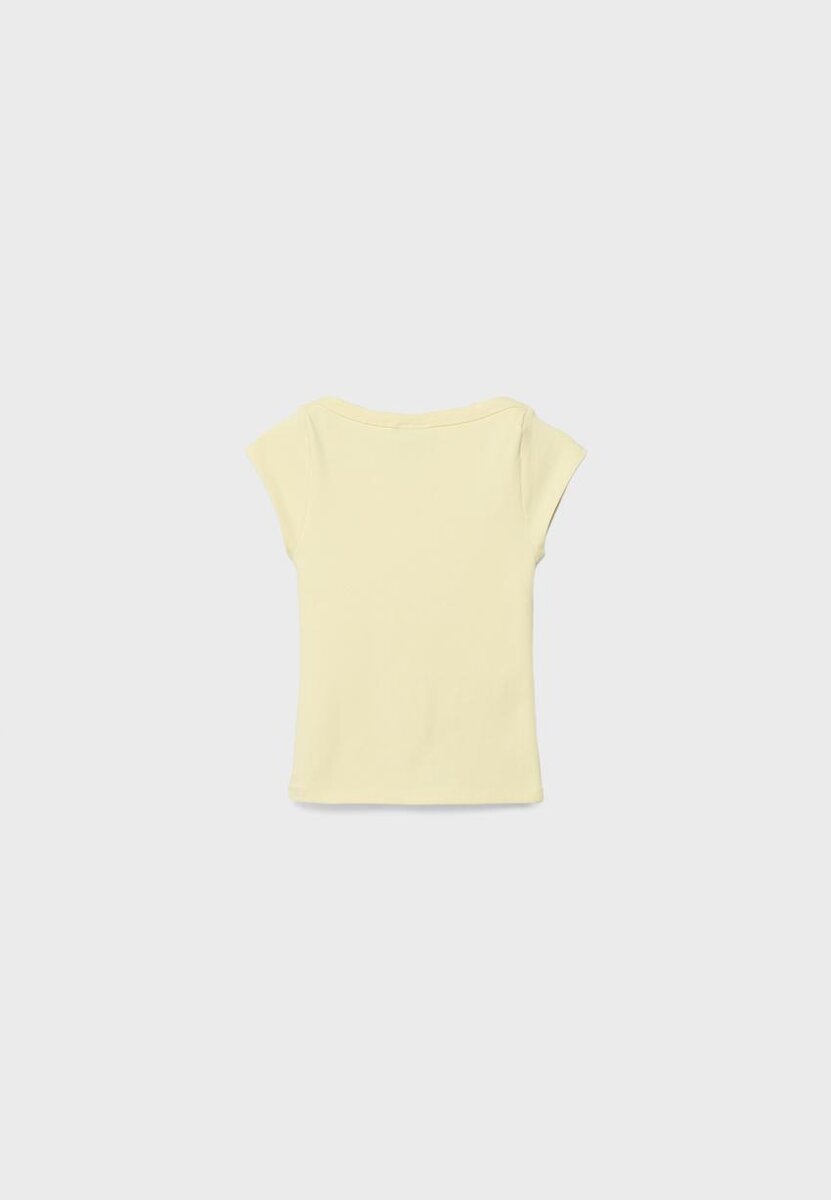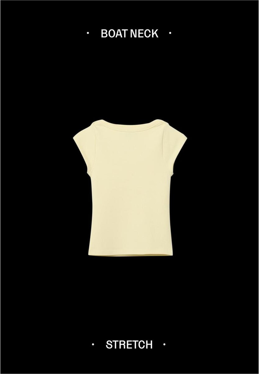 Tettsittende T-skjorte med båthals og korte ermer. Tilgjengelig i ulike farger.