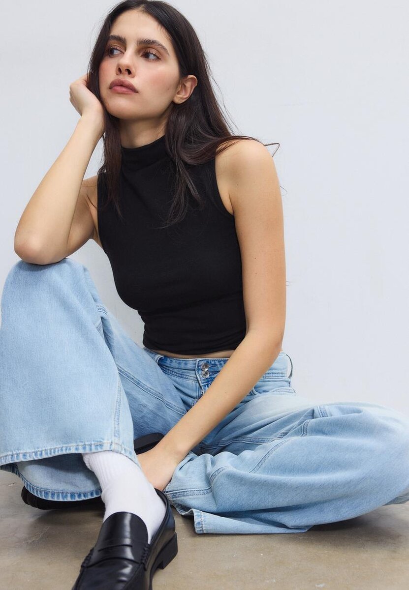 Ermeløs T-skjorte med tragtkrage hos Stradivarius for kun 14,9 $ Tilgjengelig i en begrenset periode. Mocacos Nuevo for kvinner Alltid på moten, kom inn og oppdag det nå!
