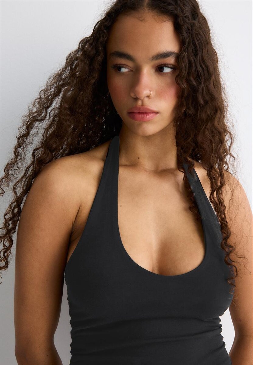 Tettsittende halterneck-crop-top med rund hals. Tilgjengelig i flere farger.