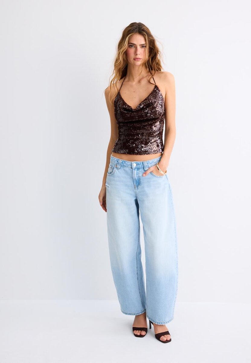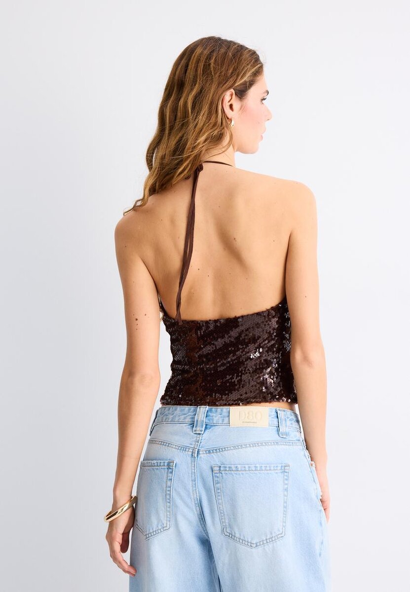 Haltertop med paljetter