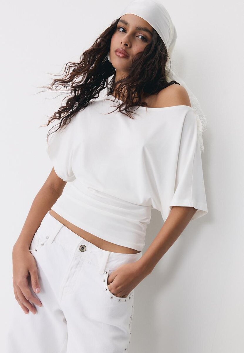 Kortærmet T-skjorte med båthals fra Stradivarius for kun 25,9 $ Tilgjengelig i en begrenset periode. Mocacos Nuevo for kvinner Alltid på moten, kom inn og sjekk det ut nå!