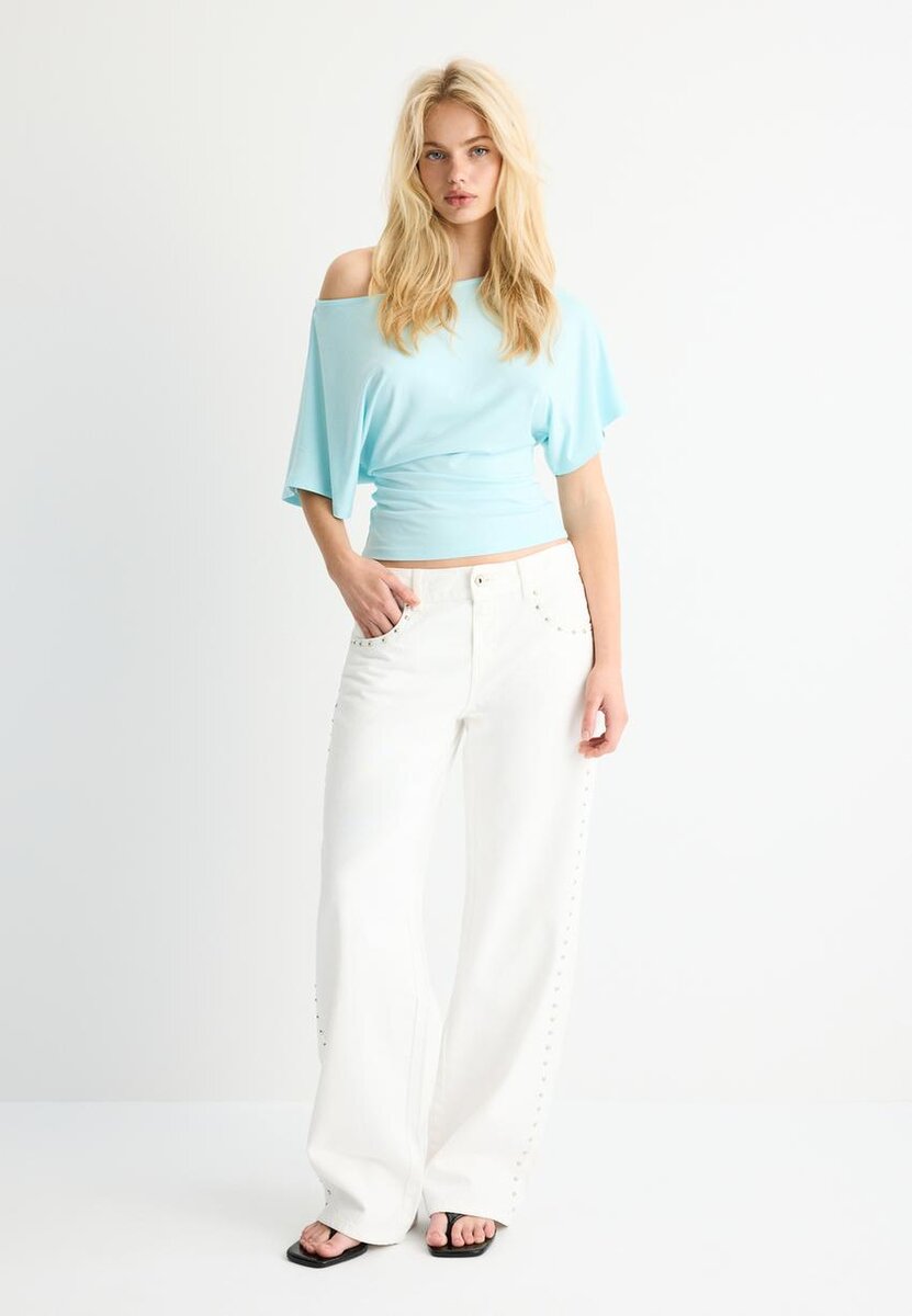 Kortærmet T-skjorte med båthals fra Stradivarius for kun 25,9 $ Tilgjengelig i en begrenset periode. Null for kvinner Alltid på moten, kom inn og sjekk ut nå!