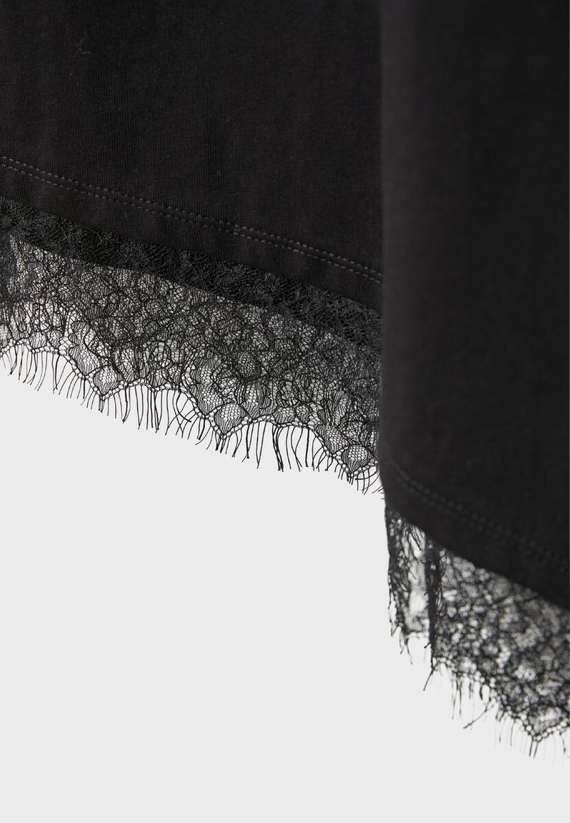 T-skjorte med korte ermer og blonder i kanten