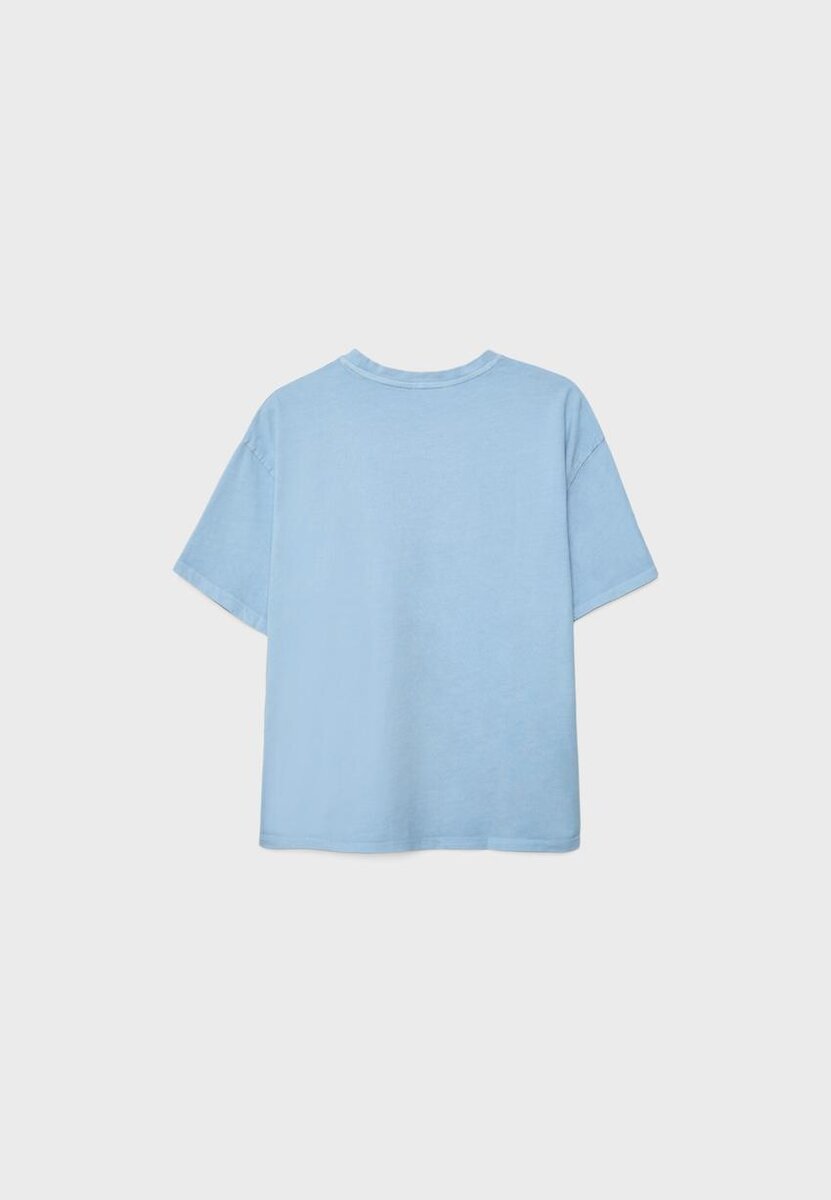 Kortærmet T-skjorte med grafisk trykk og applikasjon