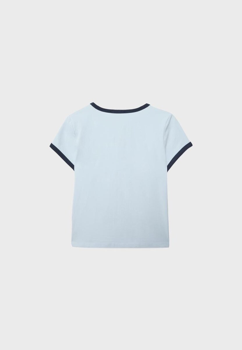 Kortærmet T-skjorte med rund hals. Har kontrastdetaljer og trykk foran.