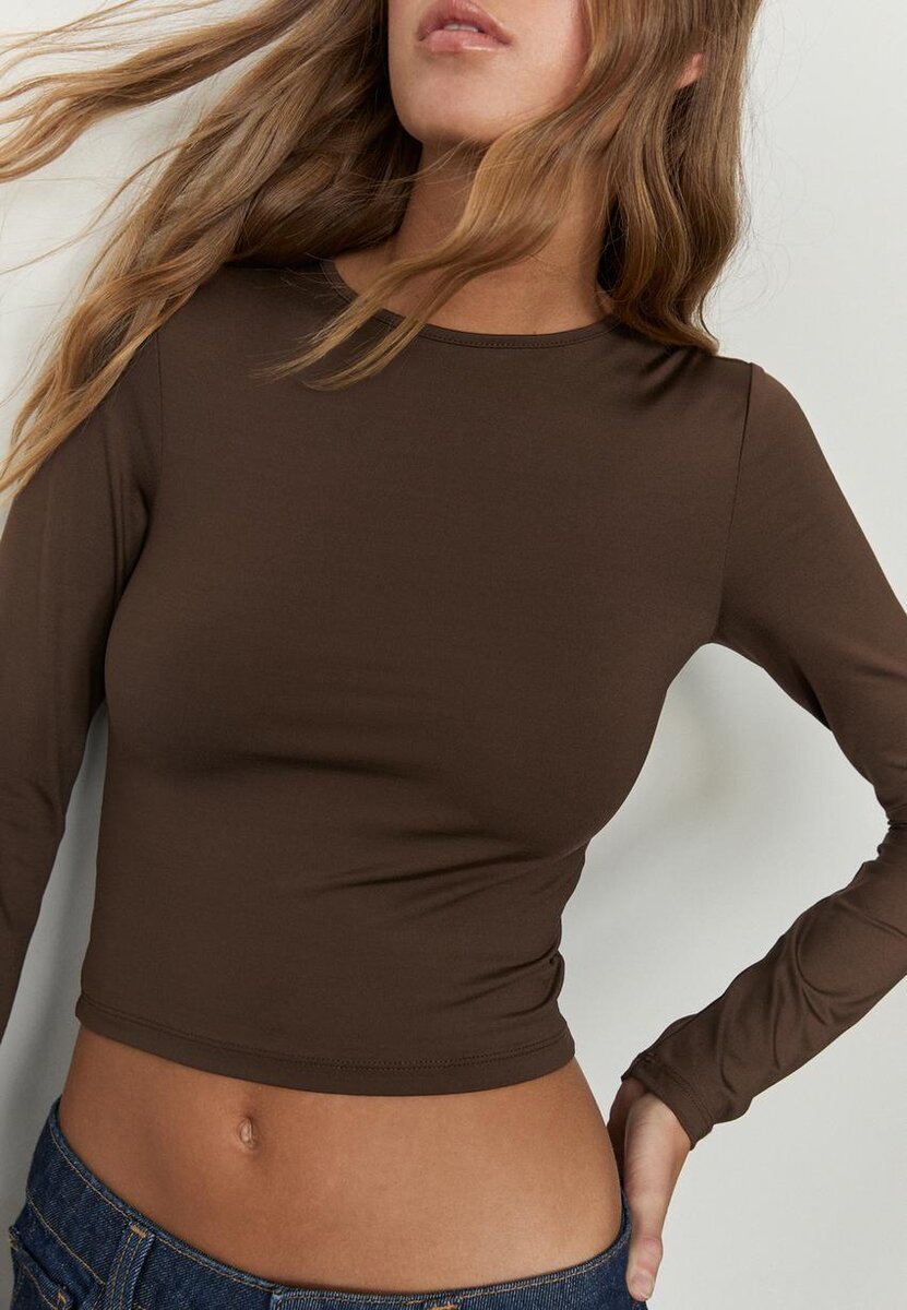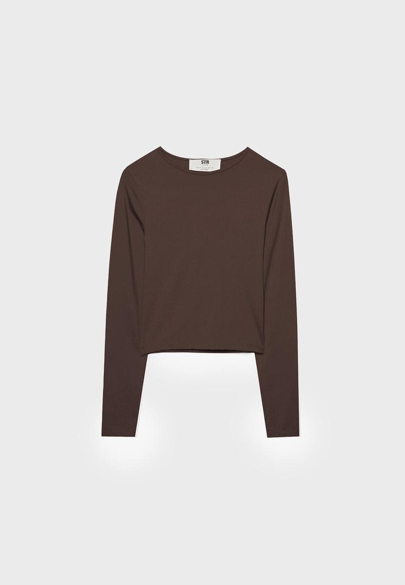 Tettsittende T-skjorte i polyamidblanding med rund hals og lange ermer. Tilgjengelig i flere farger.
