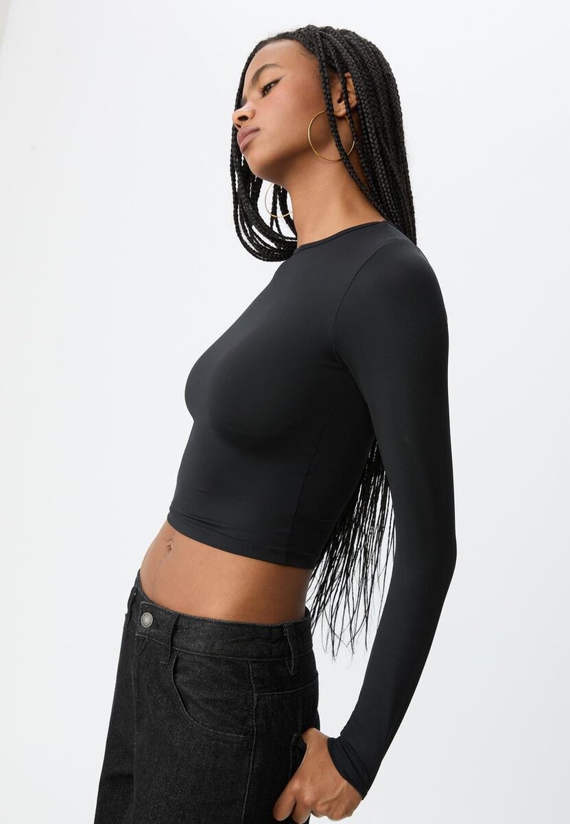 Tettsittende T-skjorte i polyamidblanding med rund hals og lange ermer. Tilgjengelig i flere farger.