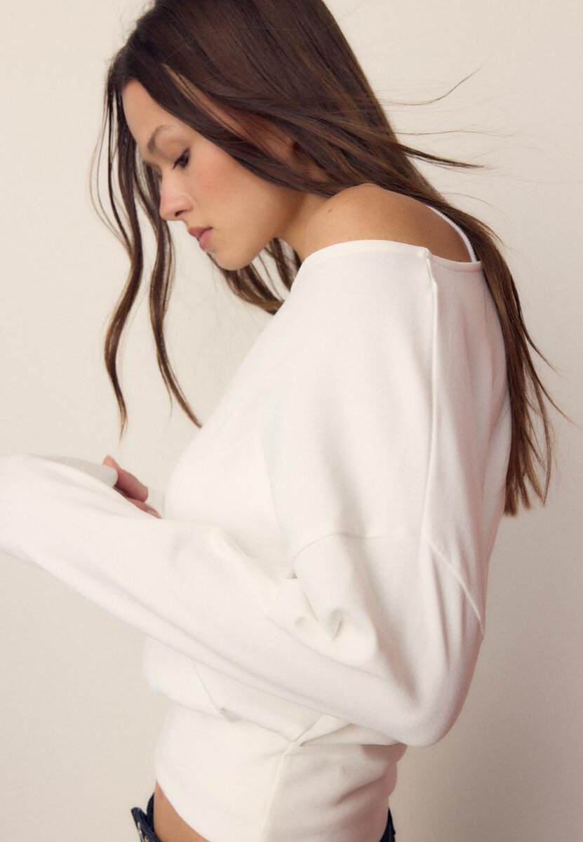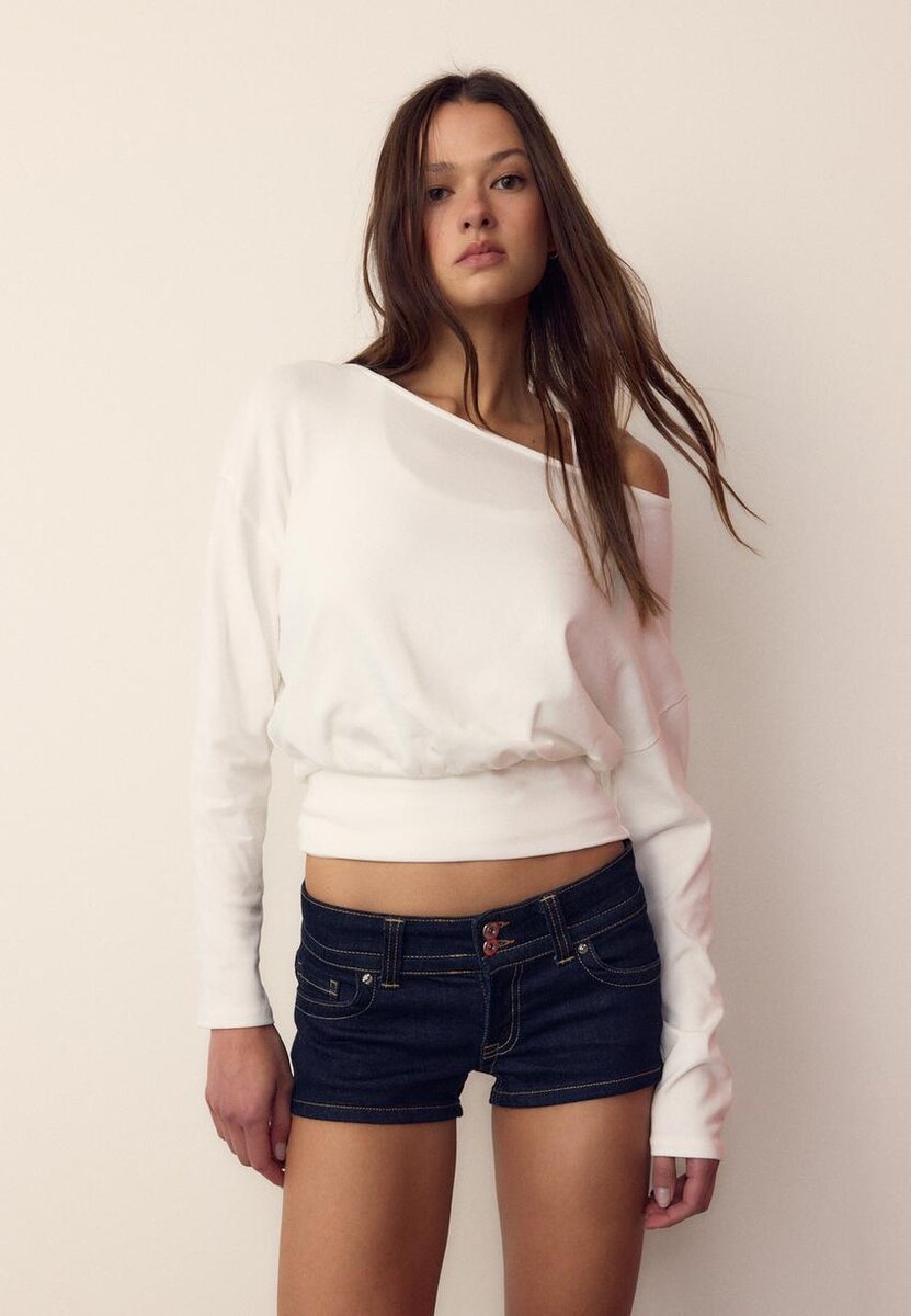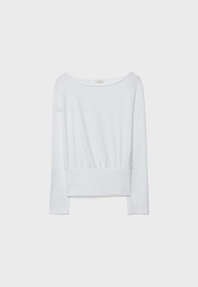 Langermet T-skjorte med båthals og kummerbund-kant