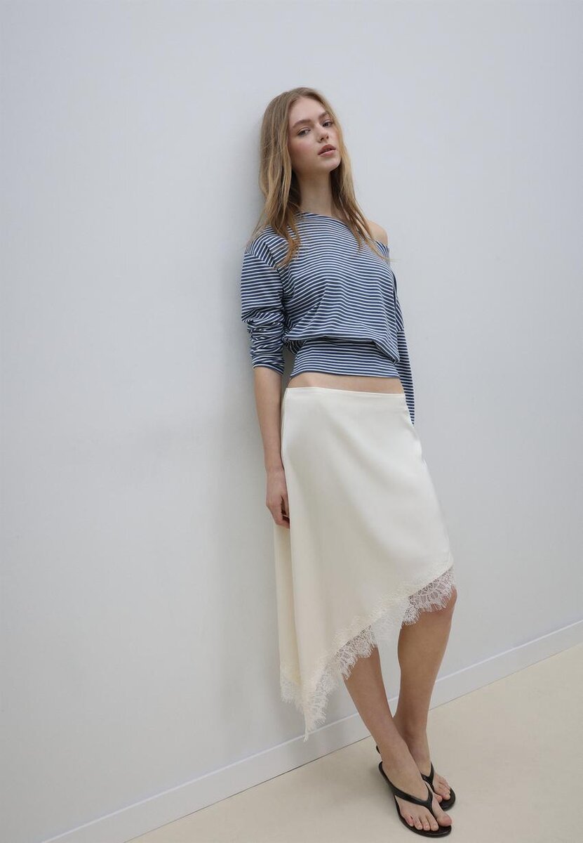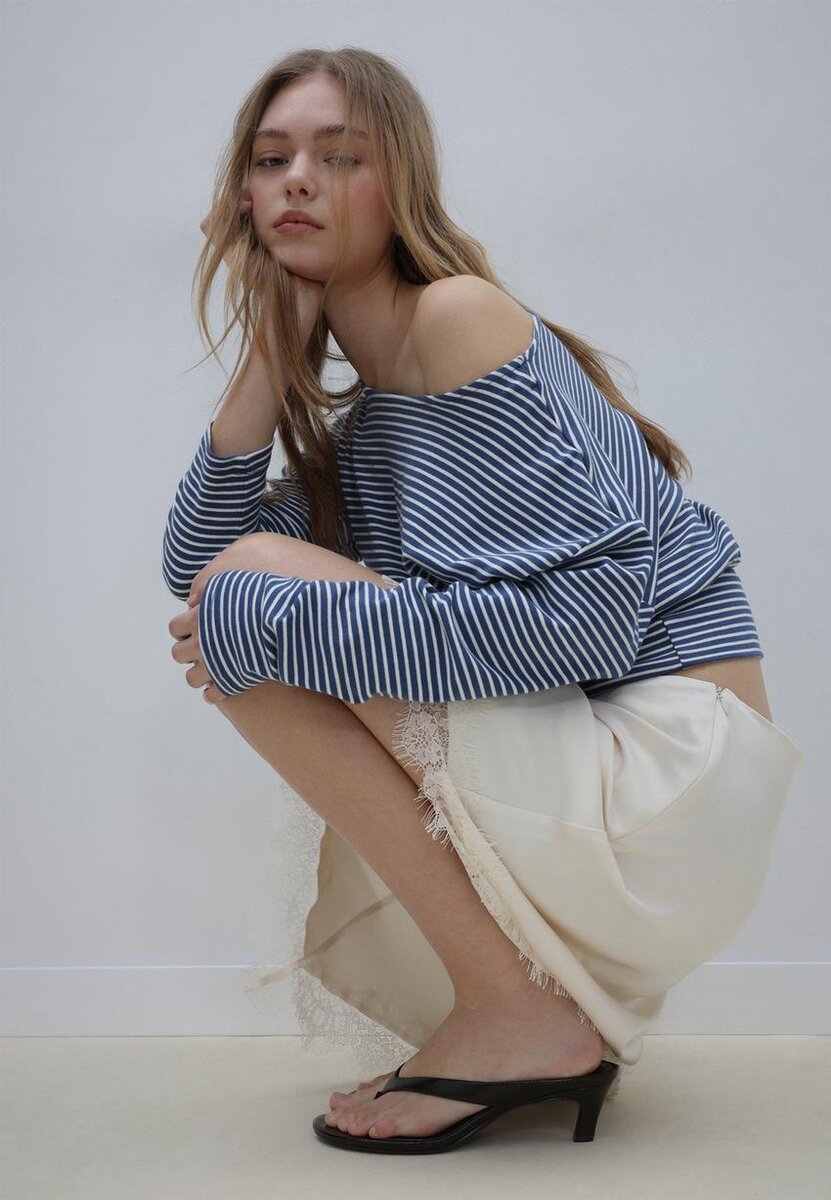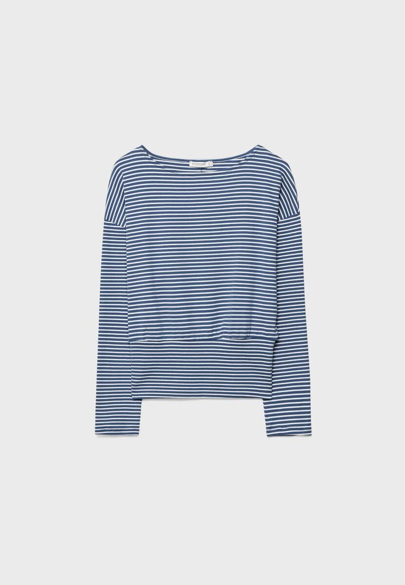 Langermet T-skjorte med båthals. Nedkant med bånddetalj. Tilgjengelig i flere farger.
