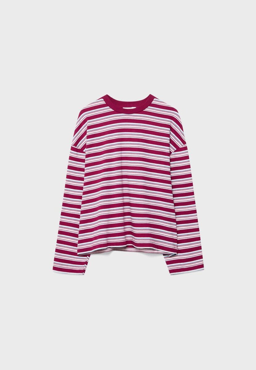 Oversize langermet stripete T-skjorte hos Stradivarius for kun 29,9 $ Tilgjengelig i en begrenset periode. Mix and Match for kvinner – alltid på moten, kom inn og sjekk ut nå!
